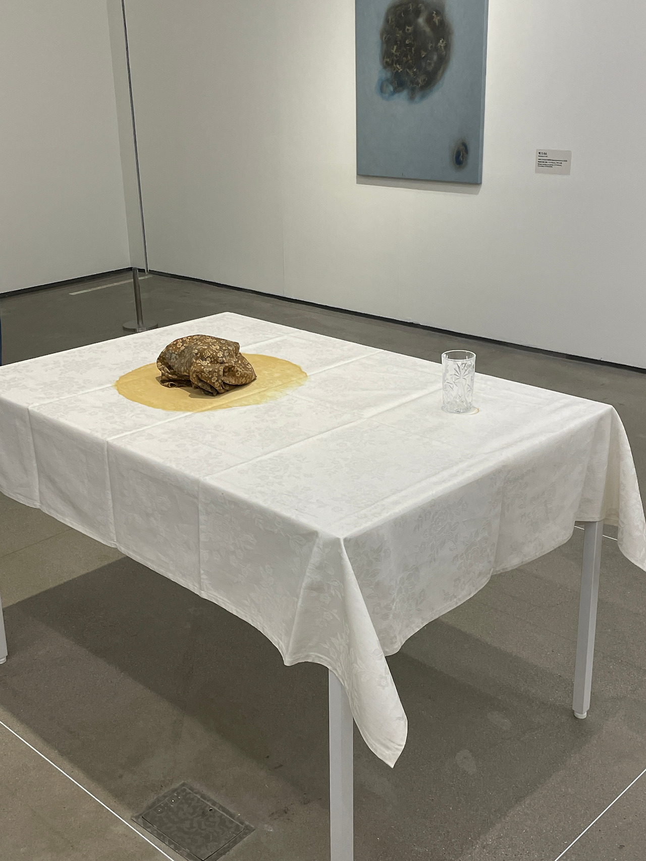 -당시 한국의 판화는 목판, 실크스크린이 주를 이루었는데 메조틴트 같은 새로운 기술을 한국에 보급하기도 했다. 전시장에 들어갔을 때 가장 먼저 봤던 작품인데, 식탁보 위에 오래된 걸레에서 옮겨온 얼룩 같기도 한 것이 실크스크린 기법으로 제작된 것이다.