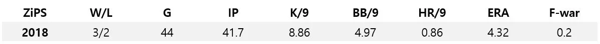하지만 반대로 생각한다면, 지난해 드디어 안식년을 가진 Martin이 이번 시즌에는 다시 체력을 보충하고 건강한 상태로 돌아와 이전과 같은 활약을 해줄 것이라고도 볼 수 있다. 그리고 그것이 가능하기만 하다면, Axford는 현재 ZiPS가 예측하고 있는 것보다 훨씬 더 좋은 성적을 거둘 수도 있을 것이다.