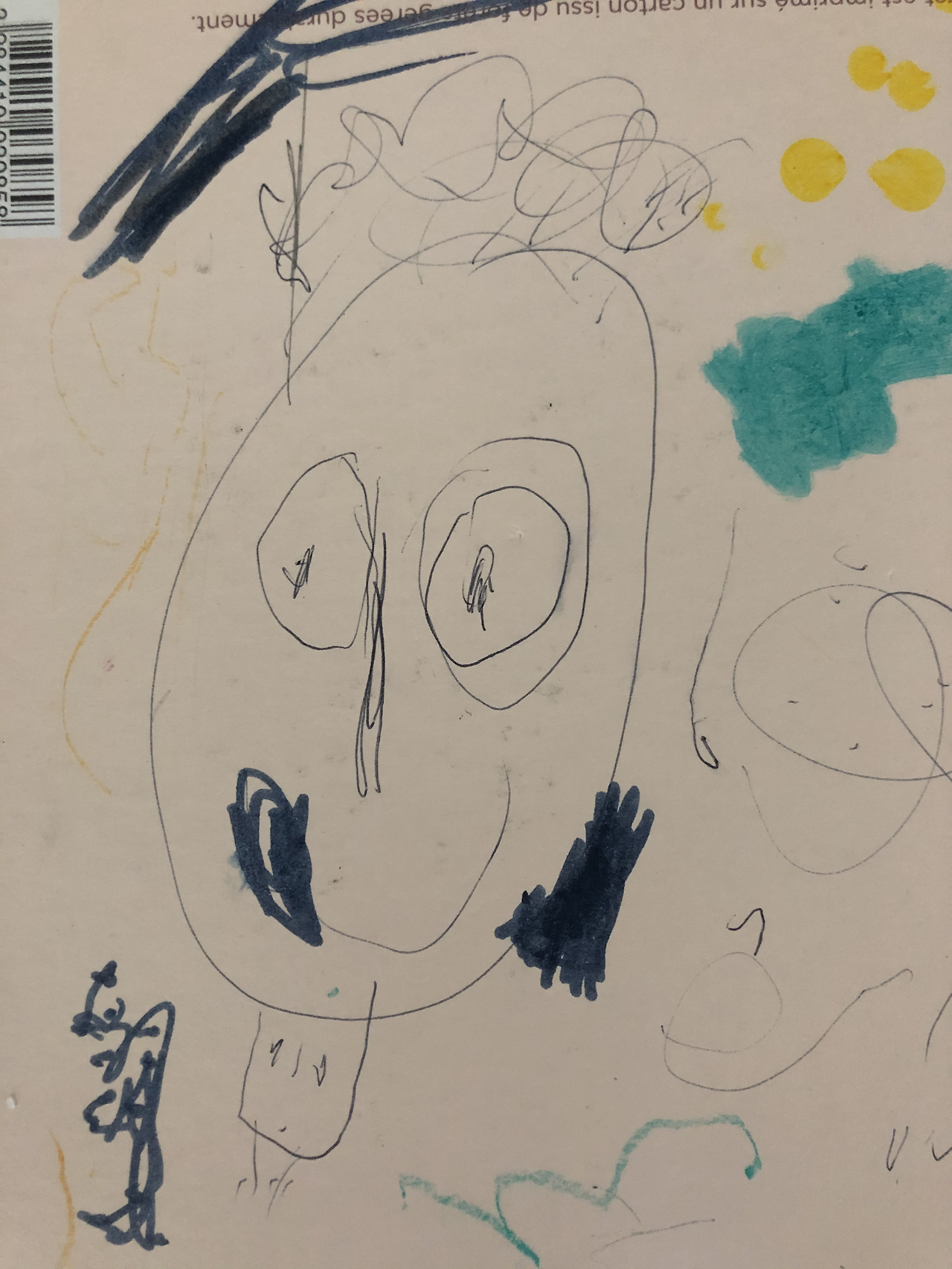 두꺼운 포장용 상자에 그린 아빠 얼굴 그림이다. 그림을 보자마자, 아빠는 ‘아 이제 진짜 사람이 알아볼 수 있는 그림을 그리는 구나’라고 생각을.... 그리고 한참을 보는데, 살짝 감동이다. 아이와 어떻게든 같이 놀아보려고, 뭔가 계속 부족하고 서툴지만 그래도 아이가 하자는데로 따라가다보니 이렇게 또 선물을 받나보다. 아마 아이 기준에서 아이가 줄 수 있는 정말 최선의 선물인 듯....
