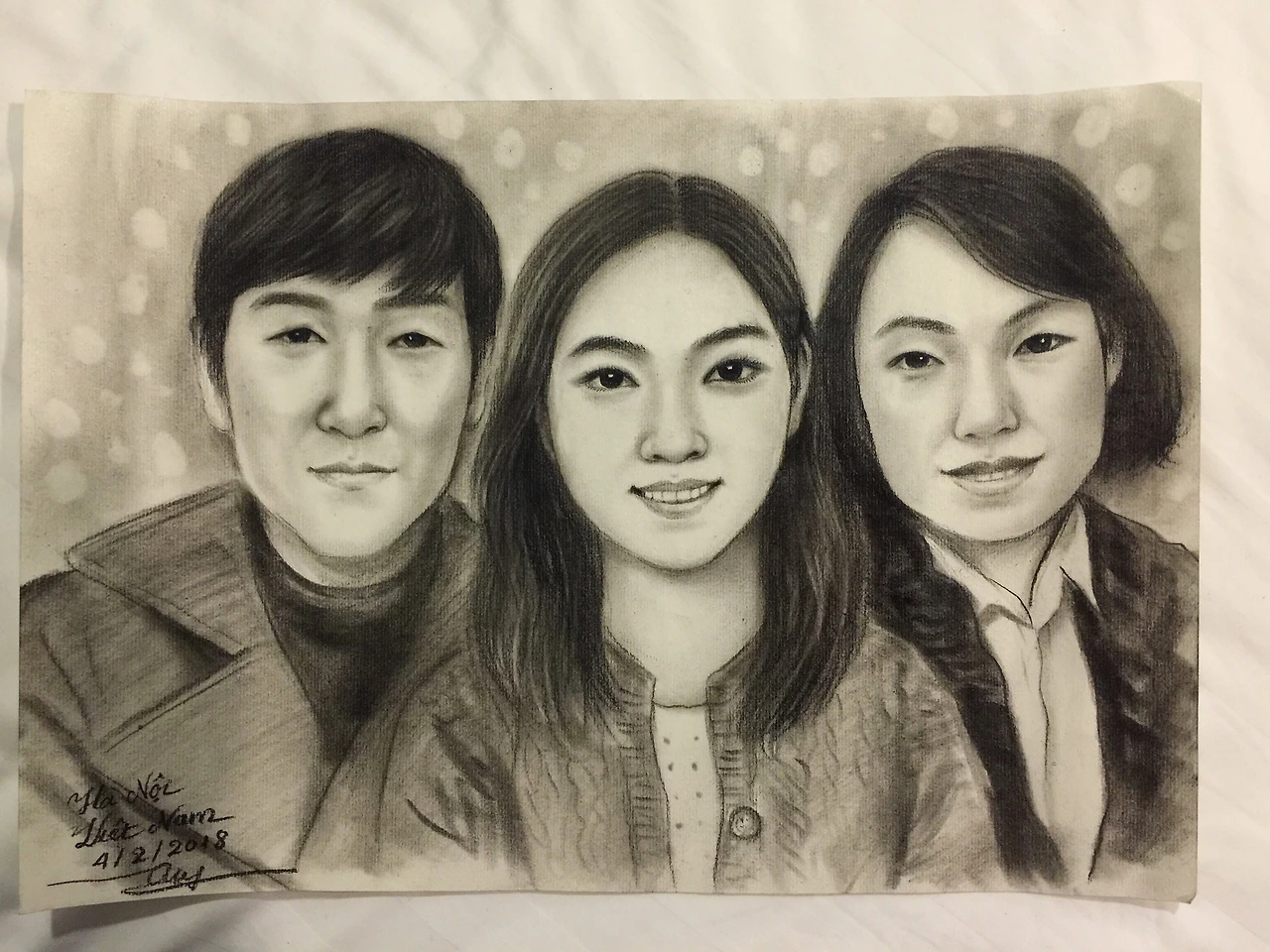 2년 전 베트남에 여행을 갔을 때 가족사진을 가지고 싶다는 꿈을 이루어냈다. 나만의 가족사진을 만들었다. 엄마 아빠와 함께 찍은 사진이 한 장도 없었던 나는 그들의 사진을 각각 보여주며 가족사진을 그려달라고 했다. 나란히 셋이서 웃고 있는 그림을 받아 들었을 때 기분이 묘했다. 그리고 이내 바보 같은 짓을 했다는 생각에 그림을 돌돌 말아 보이지 않는 곳으로 치워두었다.
