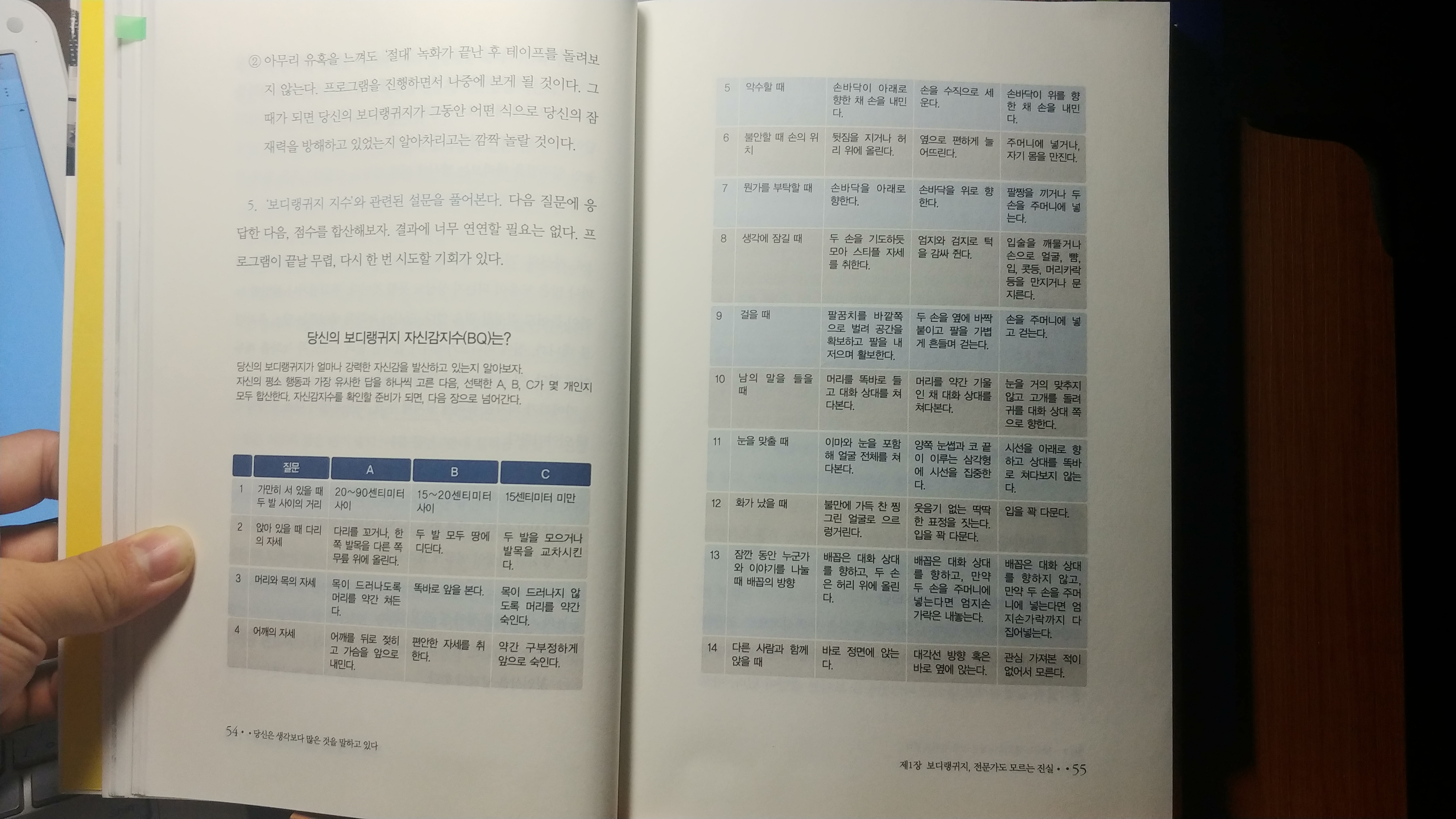 상황에 맞는 그 사람에 맞는 바디랭귀지 신호가 있을 뿐이다. 한 행동으로 그 사람의 마음을 읽고 한 행동으로 심리적 우위에 설 수 있는 간단한 방식이 바디랭귀지가 아니다.