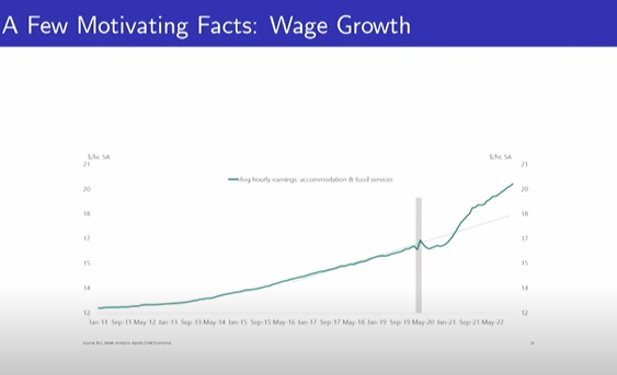 아마 코로나 이후로 노동시장에서 수요가 공급보다 많아지면서 급여상승률이 올라가고 있는 걸 보여준다