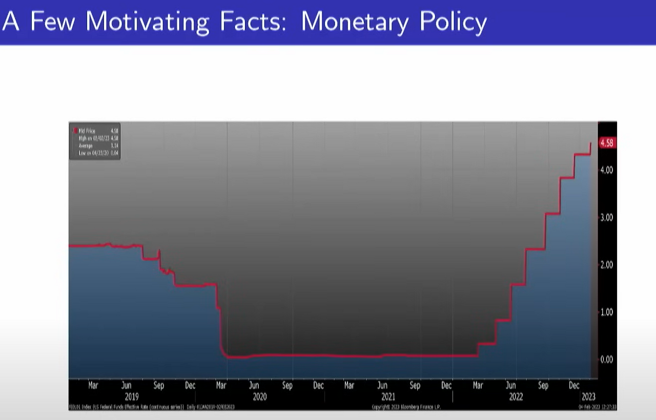 Fed는 두 가지 목표를 갖고 있다. 1) 물가안정 2) 안정적인 경기성장. 코로나 이수에 2)에 더 집중하였으나 기존에 계속 temporary라고 판단했던 물가상승에 대해서 파월은 2022년부터 본격적으로 Monetary policy를 써서 물가를 잡겠다고 선언하면서 그 어느 때보다 빠르게 US Fed Funds rate을 올렸다.