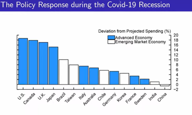 미국뿐만 아니라 얼마나 많은 나라들이 코로나 기간동안 확장정책을 실행했는 지 보여준다.