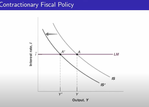 정부는 세율 및 재정지출규모 등을 변동시켜 IS 커브를 조정한다. 세율을 올리거나 재정지출규모를 줄일시에는 IS 커브는 좌측으로 이동한다. 좌측으로 이동하는 메커니즘은 세율을 올리면 가처분소득이 줄어들며 재정지출규모를 줄이면 투자가 줄어들어 그에 따라서 경제가 축소한다.
