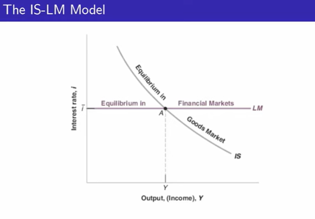 교수는 재정정책 및 통화적책을 설명하기 위하여 매크로의 핵심 모델인 IS-LM 모델을 설명한다. IS-LM모델은 IS는 투자(Investment)와 저축(Saving)을 의미하고 LM곡선에서의 LM은 유동성 선호(Liquidity preference)와 화폐 공급(Money supply)을 의미한다. 해석하자면 IS-LM 모델은 IS는 재화시장(goods market)의 움직임(combination of equilibrium)을 설명하며 LM은 금융시장을 설명하여 재화 및 금융시장을 모두 아우리는 모델이다.