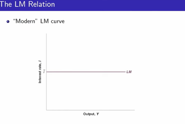 "Modern" LM 커브가 flat하다고 설명하는 내용이 흥미롭다. 학교다닐 때 배운 LM 커브는 우상향 곡선으로 기억한다. 통화수요가 올라가면 이자율이 올라가는 우상향곡선. 하지만 교수는 현재 Fed의 통화정책의 방식은 원하는 이자율에 따라 Fed가 통화공급을 해서 맞춰주므로 LM 커브는 Flat하다고 설명한다.