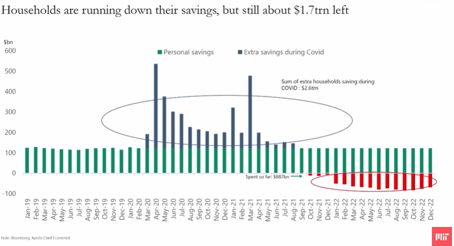 코로나 이후 사람들이 얼마나 많이 소비하고 있는 지를 보여준다. 저축이 급격하게 줄었으며 대출이 크게 늘어났다.