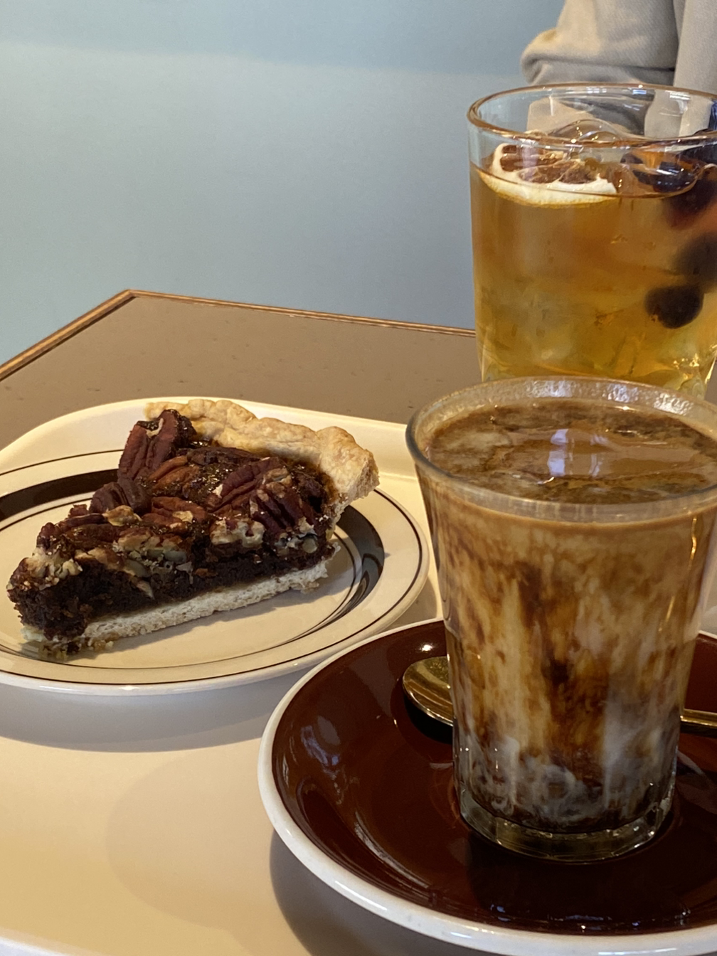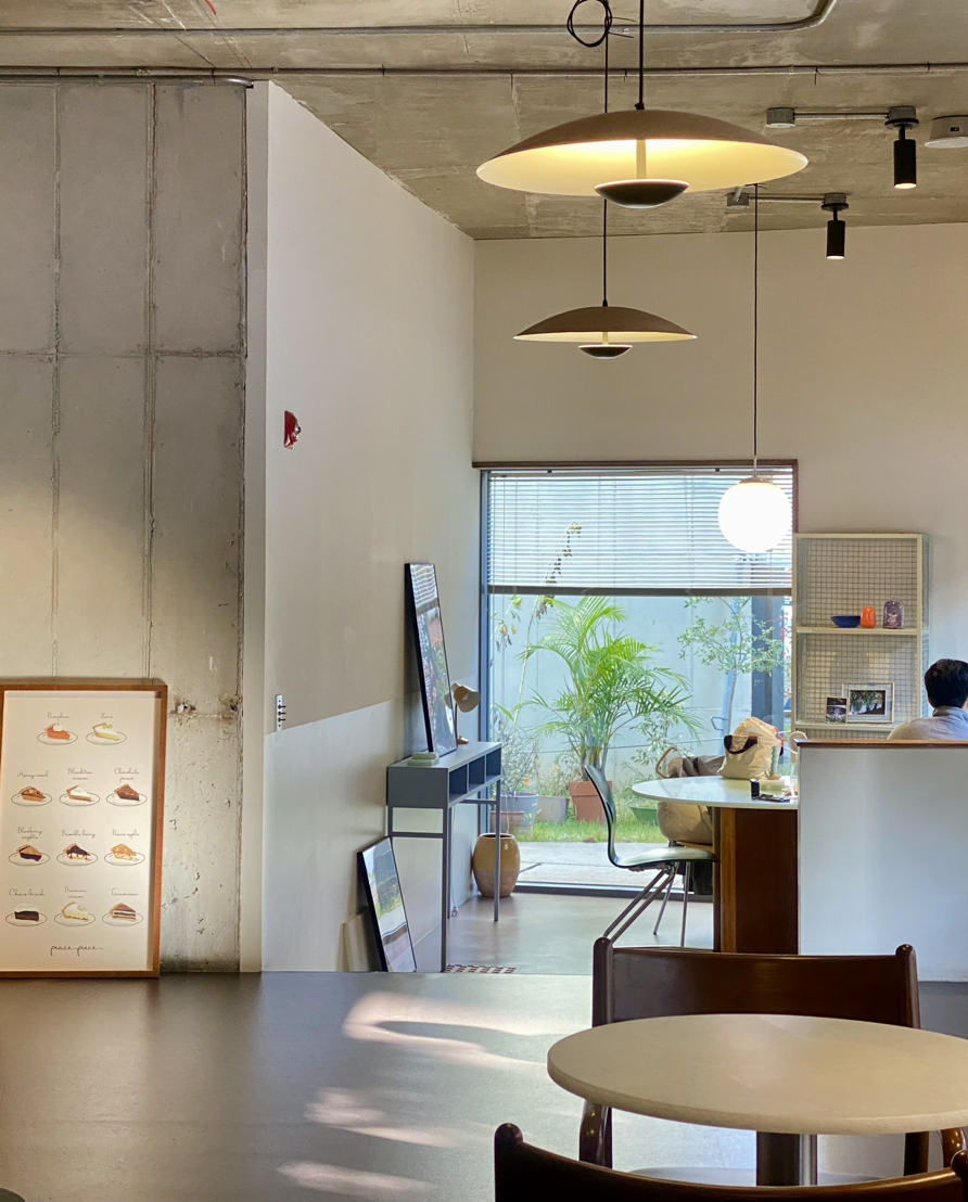 요즘 대형카페들이 정말 많이 생겼고, 많이 가보기도 했는데 넓어서 좋긴 하지만 디테일보다는 상업화에 치중되어 있는 인테리어와 메뉴 구성에 또 가고 싶은 곳은 그다지 없었다. 하지만 이곳은 피스피스 사장님이 마음속에 꿈꾸고 있던 곳들을 그대로 실현한 느낌이 가득했다. 전체적으로 톤이 맞지만 조명이나 식탁을 조금씩 다르게 배치하여 구역마다 다른 느낌이 나기도 하고, 친구의 집에 파이를 먹으러 온 따뜻한 느낌이 강했다. 유명한 카페를 찾아가는 편이 아니라 카페 데이터가 엄청난 편은 아니지만(그래도 적진 않음) 근래 갔던 카페 중에 가장 좋았다고 할 수 있다. 사람들이 적당히 있던 것도 한 몫했고, 너무 달지 않은 파이와 아샷추를 만들어주시는 서비스까지.