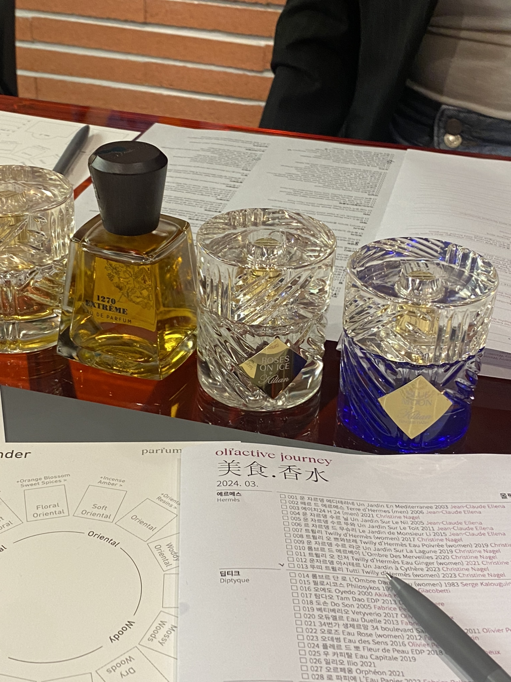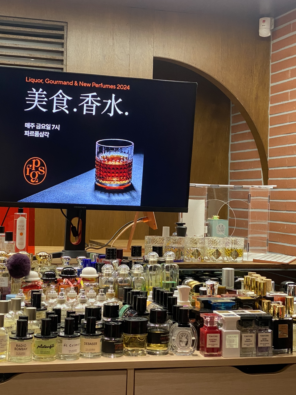그러던 중에 파르품삼각 대표님이 위스키, 꼬냑, 구루망 계열의 향수를 시향 하는 미식향수 클래스에 초대해 주셨다. 제대로 미식 향수들을 다시 시향해 볼 수 있다니! 유독 기다려지던 금요일 밤이었다.