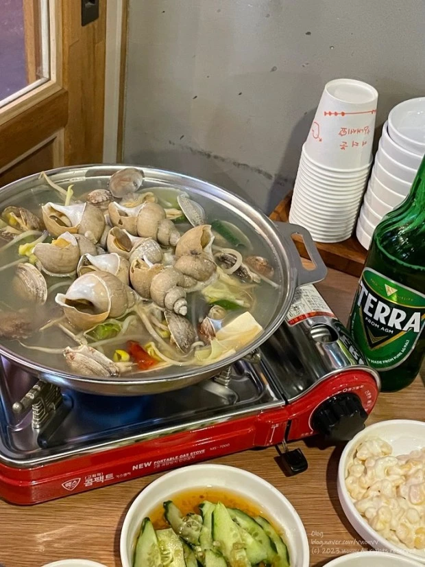 새조개숙회를 가볍게 애피타이저로 맛봤다면, 후포리 백골뱅이탕이나 알곤이탕을 주문해 따뜻하면서 한편으로는 시원한 소주 안주 본식을 즐기면 된다. 개인적인 선호도가 그렇게 높지 않은 재료인 골뱅이임에도 시원한 국물과 어마어마한 크기의 골뱅이, 그리고 계속되는 육수리필에 쥐도 새도 모르게 알딸딸함을 느낄 수 있었다.