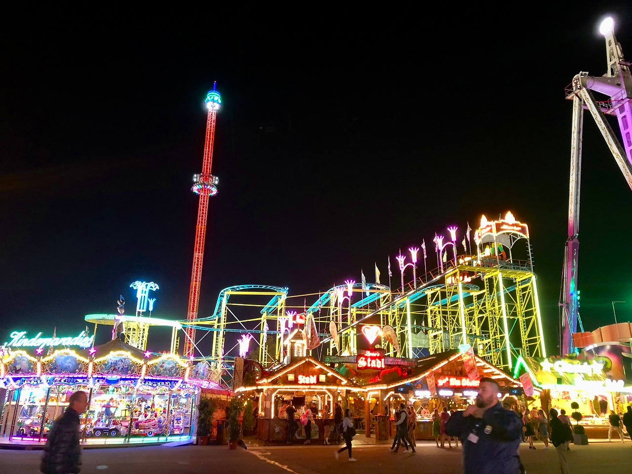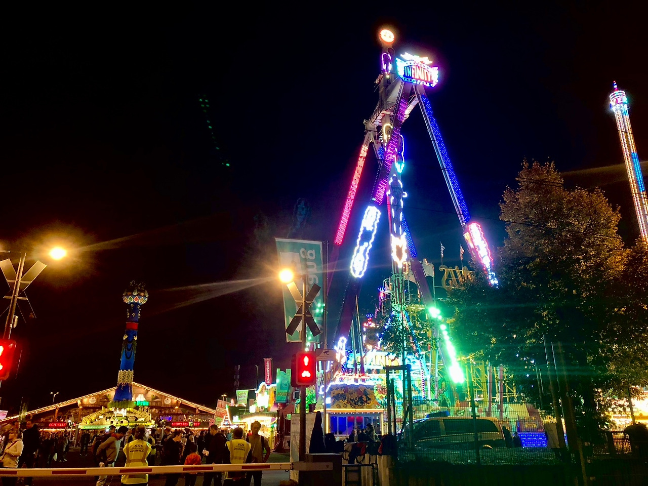 옥토버페스트에는 이동식 놀이기구가 설치되는데 술을 그렇게나 많이 마시고 저런 격렬한 놀이기구를 타도 괜찮은 걸까? 회전목마는 주말에 오는 아기들을 제외하면 아무도 타지 않는다.