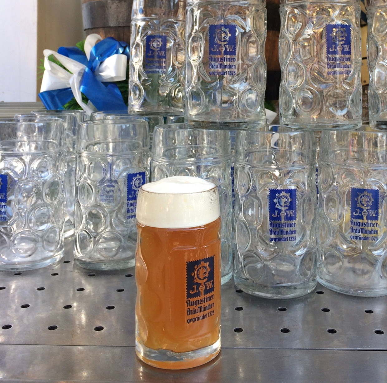 14세기에 아우구스티너 수도원에서 이 맥주를 양조하기 시작해 지금은 뮌헨을 대표하는 밀맥주 중 하나가 된 아우구스티너 맥주다. 뮌헨의 축제에서는 아우구스티너 맥주를 생맥주로 마실 수 있어 좋다! 물론 이 컵도 기념품으로 챙겨와서 지금도 집에서 이 맥주잔에다 맥주를 마시는데 여기다 맥주를 마실 때마다 뮌헨의 축제가 생각난다.