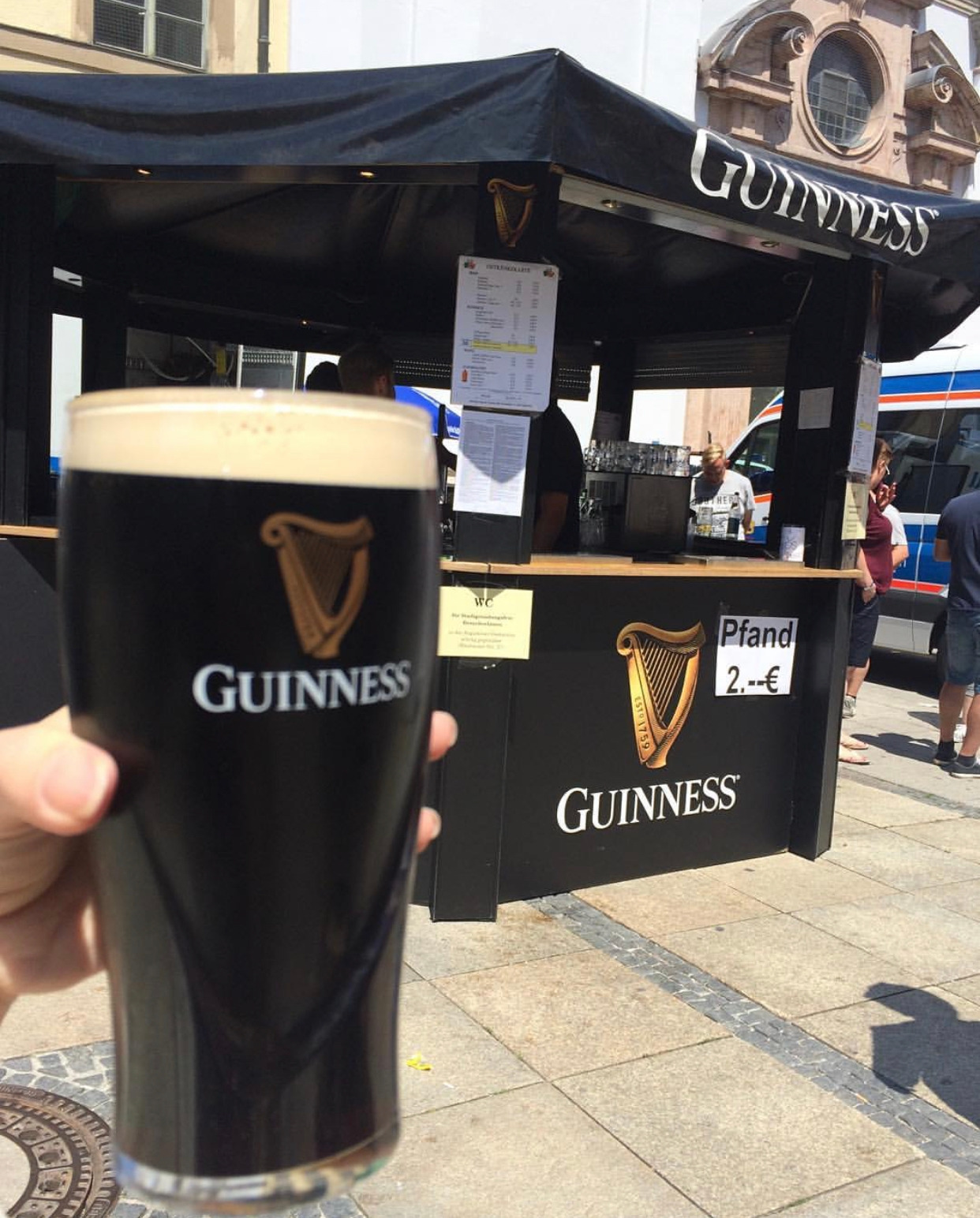 가는 날이 장날이라 마침 뮌헨에는 여름의 슈타트페스트(Stadtfest)가 열리던 중이었는데 독일답지 않게 로컬 양조장이 아닌 다른 곳에서 만들어진 맥주를 파는 부스가 설치되어 깜짝 놀랐다. 독일에서 기네스 생맥주는 동네에 하나씩은 꼭 있는 아이리쉬 펍이 아니라면 보기 힘들지만 나는 아이리쉬 펍이 너무 어두침침하고 시끄러운 데다 담배연기로 꽉 차서 싫어하기 때문에 독일에서는 이 때 처음 기네스 생맥주를 마셔보게 되었다.