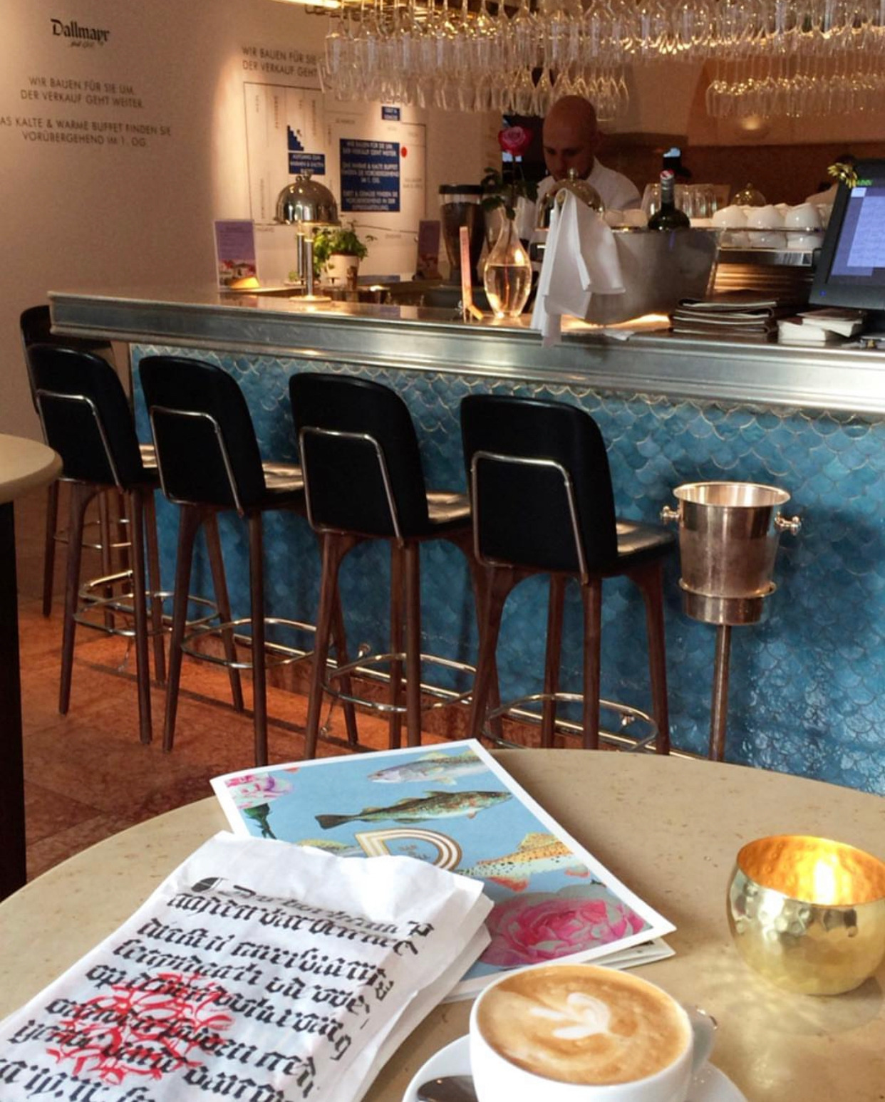 뮌헨에 가면 꼭 마셔봐야 한다는 Dallmayr 커피인데 뮌헨 구시가에 카페 겸 레스토랑과 식료품점 겸 카페 이렇게 두 지점이 자리해 있고 뮌헨 시 외곽에 커피를 직접 로스팅하는 공간인 로스팅카페가 있다. 식사시간이 아닌 오후의 애매한 시간에 들러서인지 모두들 간단한 안티파스티나 샐러드에 와인을 곁들여 마시고 있었다. 나는 무더위에 에너지가 고갈된 상태라 아이스 아메리카노가 간절했지만 독일의 카페에는 그런 건 팔지 않기 때문에 항상 마시던 카푸치노를 주문했다. 이곳의 카푸치노는 다른 곳보다 부드러운 맛이 나면서도 커피 향이 강해서 지금까지도 종종 생각난다. 그래서인지 Dallmayr 식료품점에 딸려 있는 카페에서 주위를 둘러보면 누구 할 것 없이 전부 카푸치노를 마시고 있다. 얼마전에 현대백화점에 갔는데 지하에 있는 슈퍼마켓에 네스프레소 머신과 호환되는 Dallmayr 커피 캡슐을 파는 것을 봐서 기뻤다. 이 캡슐로 커피를 내려 카푸치노를 만들면 뮌헨에서와 같은 맛이 날지 기대된다.
