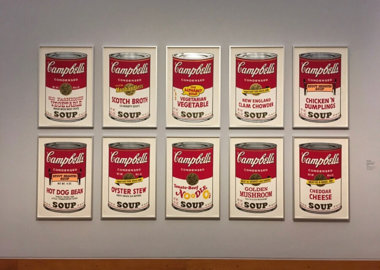캠벨수프 스텐실은 보통 전시회가 열리면 한 점만 전시되거나 많아 봤자 두세점 뿐인데 여기는 열 점이나 한꺼번에 걸려 있어 신기했다. 열 가지 다른 맛 수프를 구경하는 게 재미있었다. 더군다나 이 전시회에는 캠벨수프 뿐 아니라 앤디 워홀의 작품 중 언젠가 직접 보고 싶었던 작품이 많아서 더 좋았다!