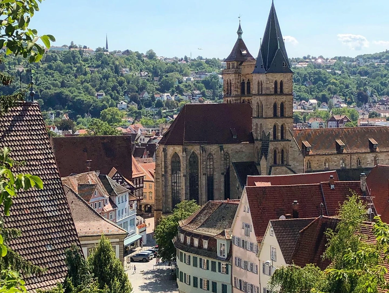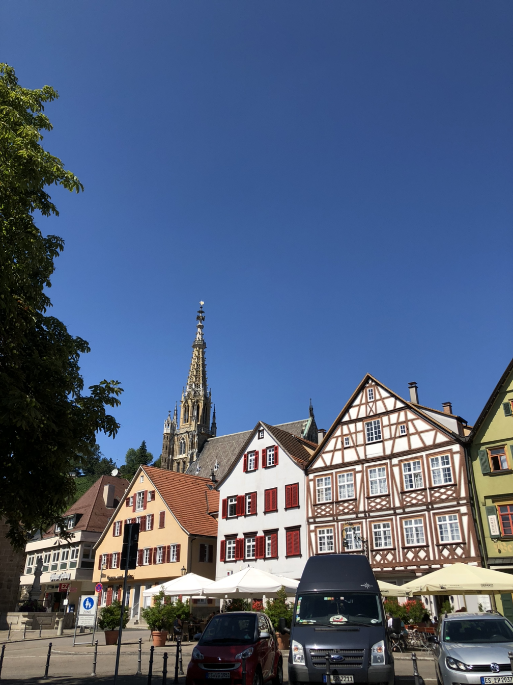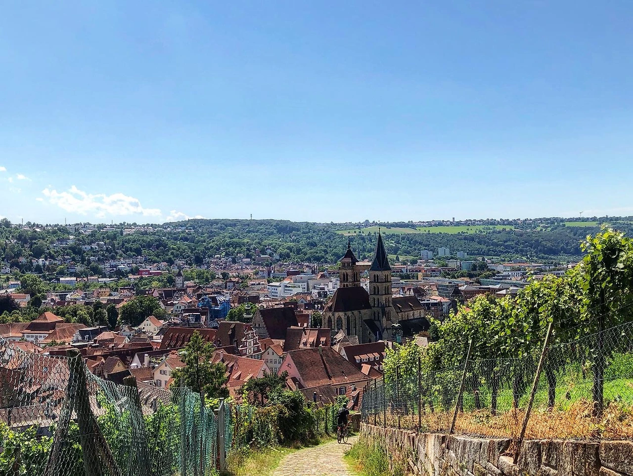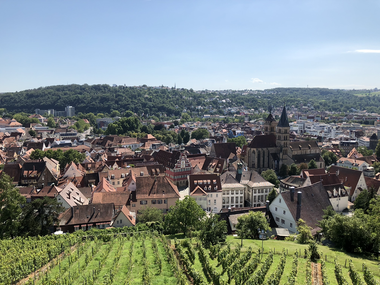 에슬링엔을 찍은 사진 중 가장 좋아하는 사진이다. 가까이서 볼 때도 예쁜 건물들이었는데 이렇게 살짝 높은 곳에서 멀리 떨어져서 보니 예쁘게 빚어 둔 도자기 집 모형 같아서 정말 예뻤다. 게다가 붉은 지붕이 있는 도시가 녹색의 포도밭에 감싸인 모습이 좋다.