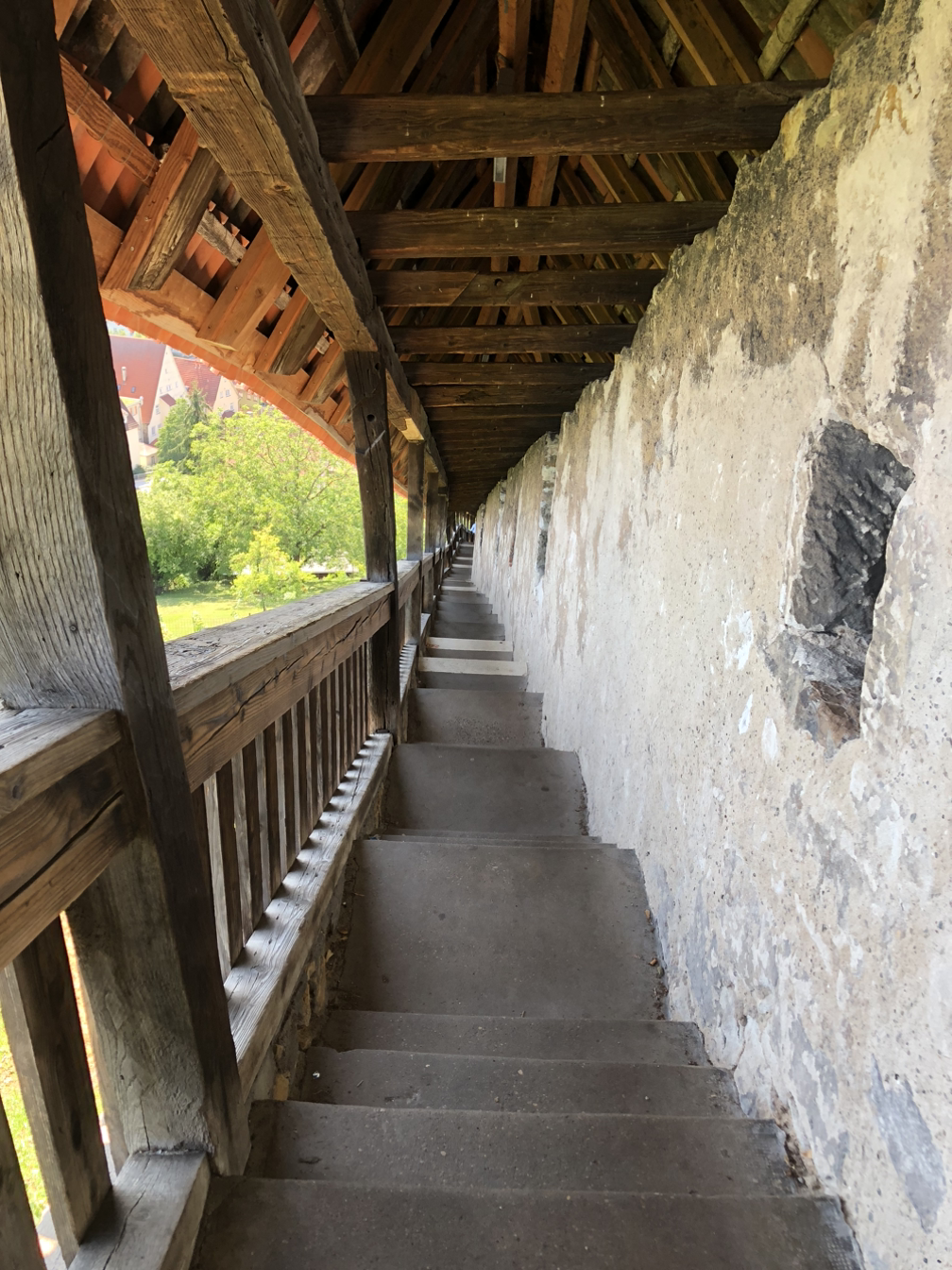 주변을 돌아보니 마침 하산하는 프랑스인 그룹이 보였는데 그 사람들이 내가 올라왔던 언덕이 아닌 계단으로 내려갈 수도 있다고 해서 따라가봤다. 그런데 계단이 정말 무섭게 생겨서 이 길로 내려가는 게 맞나 하는 생각을 잠시 했지만 그 프랑스 그룹의 말마따나 이 계단에는 최소한 지붕이라도 있다는 점을 들어 계단을 이용해 보기로 했다. 모르긴 몰라도 중세에 사람 여럿이 명을 달리했을 것 같이 생겼다.