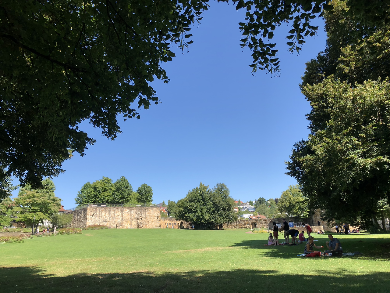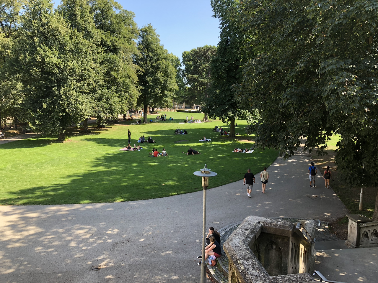 다행스럽게도 위 사진의 길을 따라서 걷다 보니 사람들이 나와서 안심했다. 날씨 앱을 켜 보니 그새 기온이 36°c까지 올라 있었다. 벤치에 앉아 예쁜 풍경을 보며 가져온 책을 읽고 싶었지만 목도 너무 말랐던 데다 너무 더워서 그만 내려오기로 했다. 나는 책을 읽을 때 너무 집중을 해서 주변에 무슨 일이 일어나도 모르는데 책을 읽는 사이 피크닉을 즐기고 있던 사람들이 다들 떠나버리는 사태가 발생한다면 사람도 거의 남지 않은 성에서 범죄의 타겟이 될까봐 무섭기도 했다.