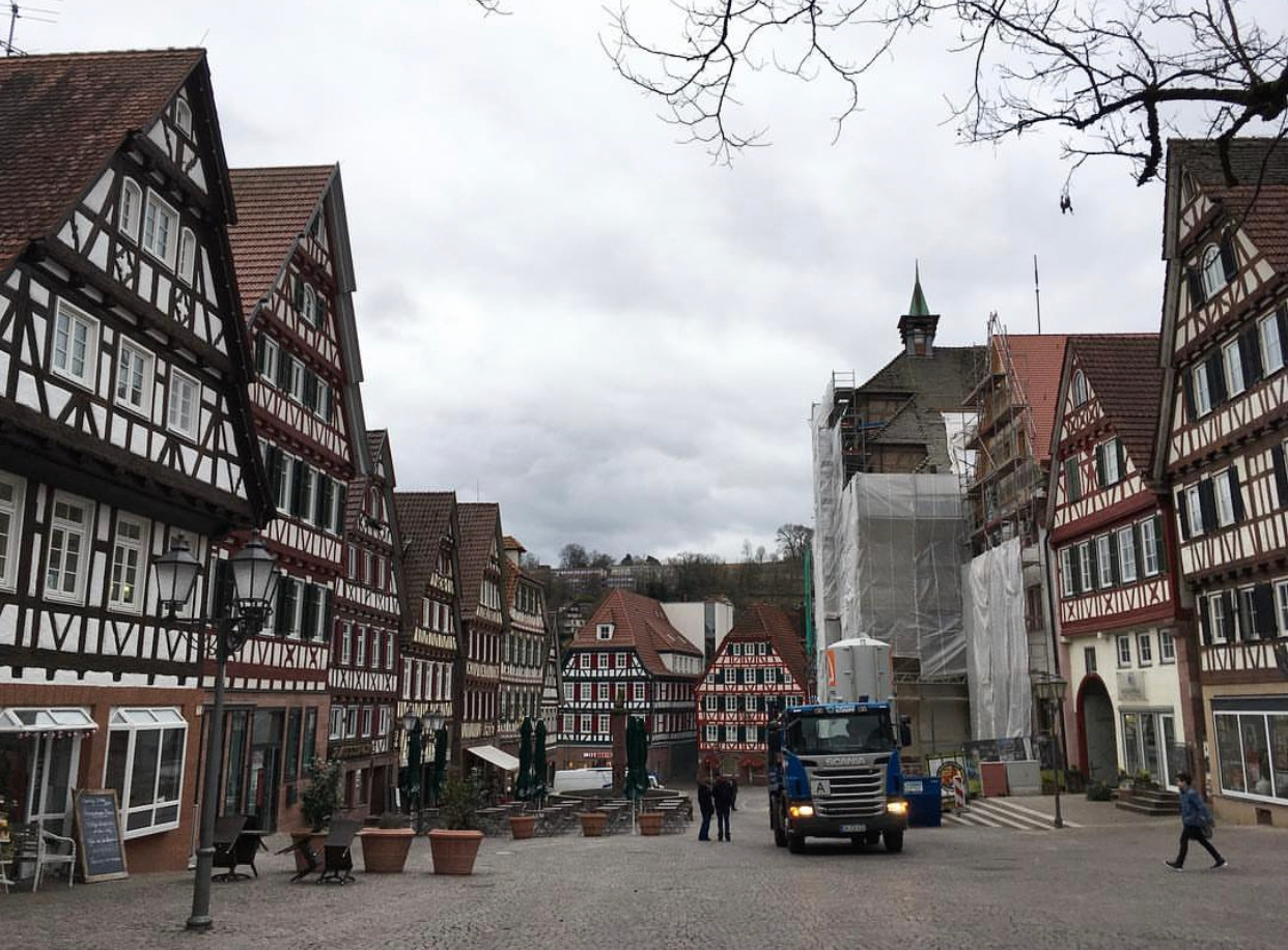헤르만 헤세 생가를 중심으로 해서 관광지로 발돋움하려는 시도인지 건물마다 저런 모양으로 외관 리모델링을 하느라 온통 공사중이었다. 그 덕에 인구 2만 명뿐인 작은 마을 칼브는 아주 예뻤다.