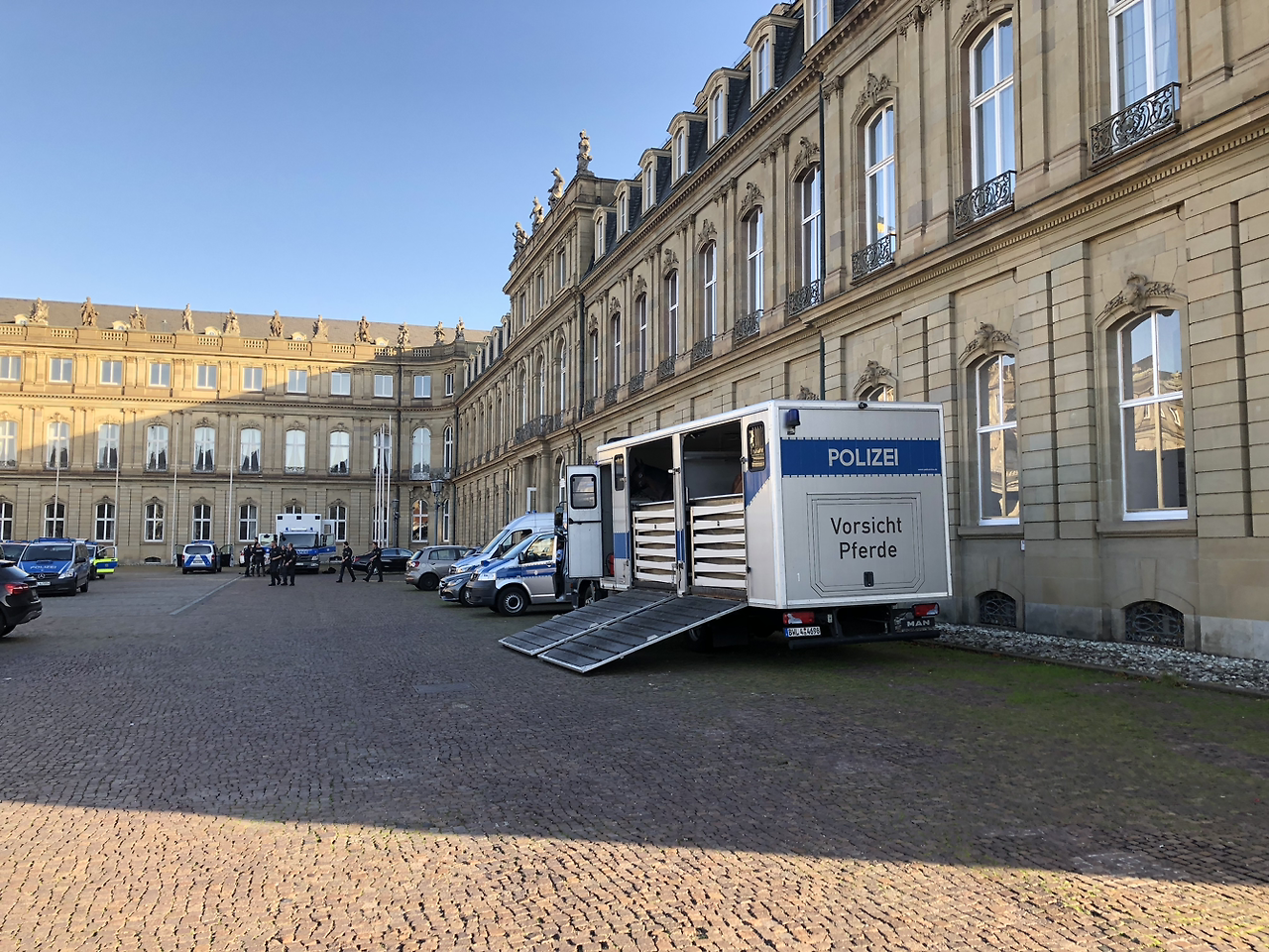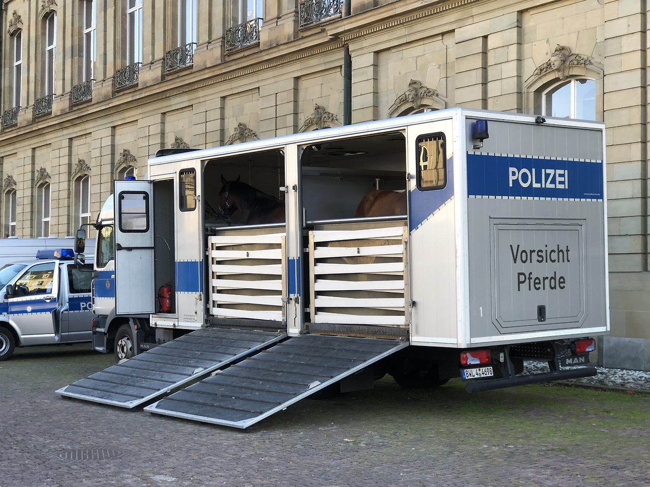 군마도 아니고 경찰마라니 아주 생경한 느낌이 들지만 의외로 말의 도시 슈투트가르트에서는 흔히 볼 수 있다. 각종 축제마다 경찰마가 등장하는 것은 물론이고 경찰이 거리 순찰을 돌 때에도 공원 등지에는 경찰차 대신 경찰마와 함께한다. 위 사진은 슈투트가르트 시티 페스티벌에 동원된 경찰마다.