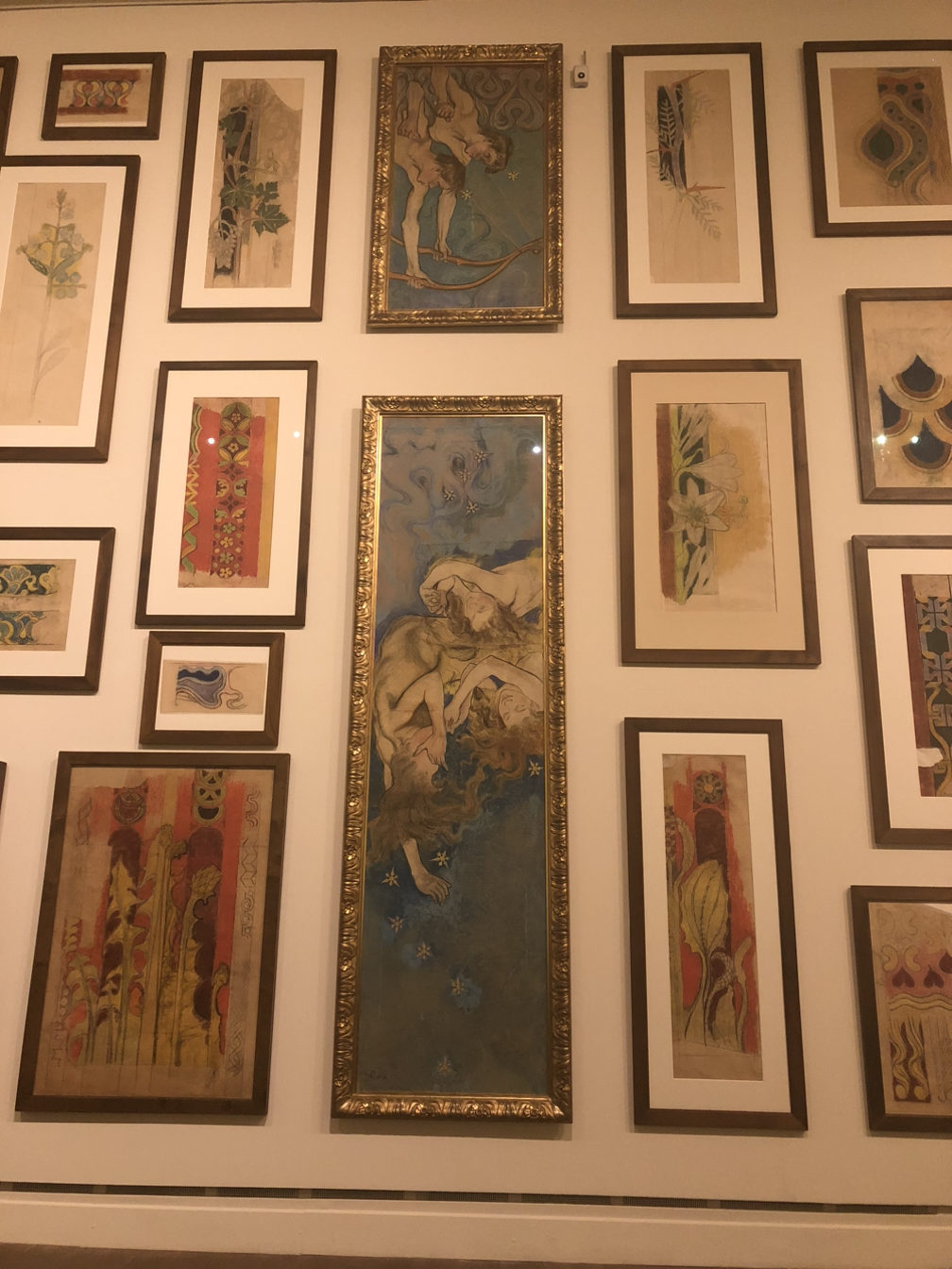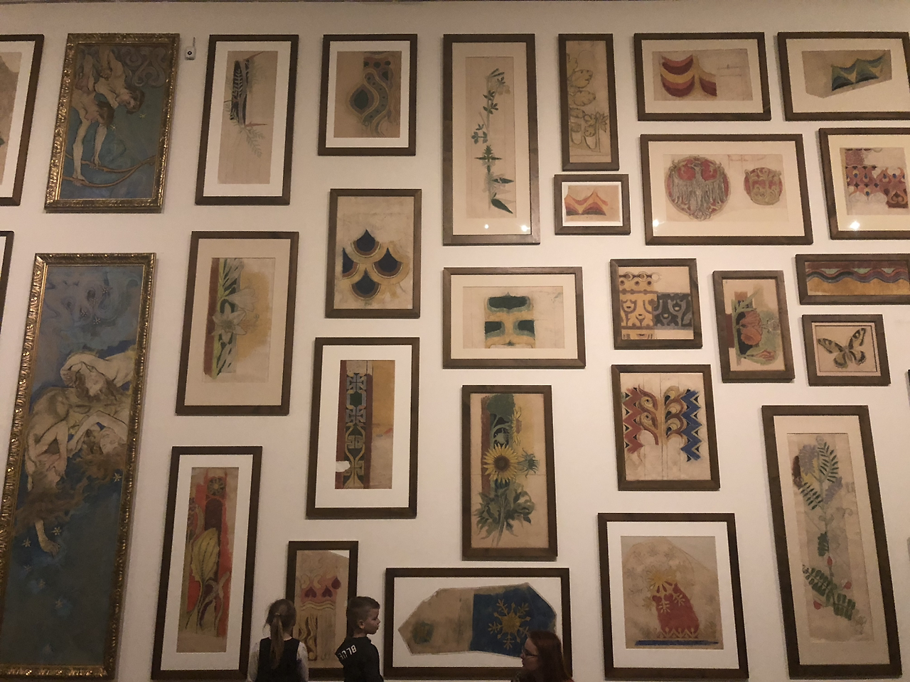 비스피안스키의 어린 딸을 그린 그림 외에는 큰 기대가 없었던 전시회였지만 그가 평생을 크라쿠프에 살며 모든 작품 활동을 이곳에서 한 만큼 크라쿠프 시 정부와 국립 미술관이 소장하고 있는 500여점의 작품을 전시한 대규모 전시회라 볼거리가 많았다. 이 전시회에는 작가가 생전에 그렸던 수많은 작품들과 설계에 참여했던 건축물의 모형이 전시되어 있었는데 전부 하나같이 훌륭해서 새로운 예술가를 알게 되는 기쁨을 마음껏 누릴 수 있었다. 특히 전시회에 입장하자마자 보게 되었던 벽은 층고가 높은데다 넓기까지 한 벽 한 칸을 통째로 저렇게 꾸며둬서 신선한 충격이었다. 정중앙에 있는 천사 그림이 시선을 사로잡아 화가의 어린 딸을 그린 그림을 찾아 나서야 한다는 것도 잊고 한동안 그 앞에 서 있었다.