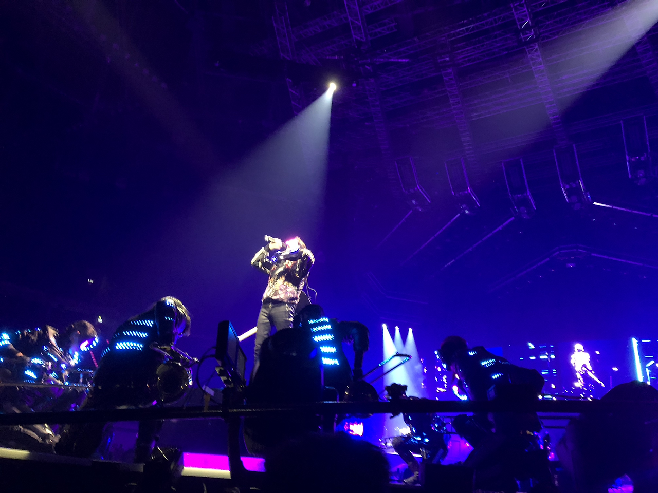 예정되었던 6시가 아닌 7시가 되어 드디어 무대에 불이 켜졌다. 이때쯤 나는 수면 부족에다 약한 탈수에 시달려 살짝 정신이 혼미한 상태라 공연 같은 건 어떻게 되어도 좋다는 생각마저 하고 있었다. 테러 위험이 있다며 물통은 공연장 입장 전에 전부 압수당해서 물 한 방울이 절실해지고 있었다.