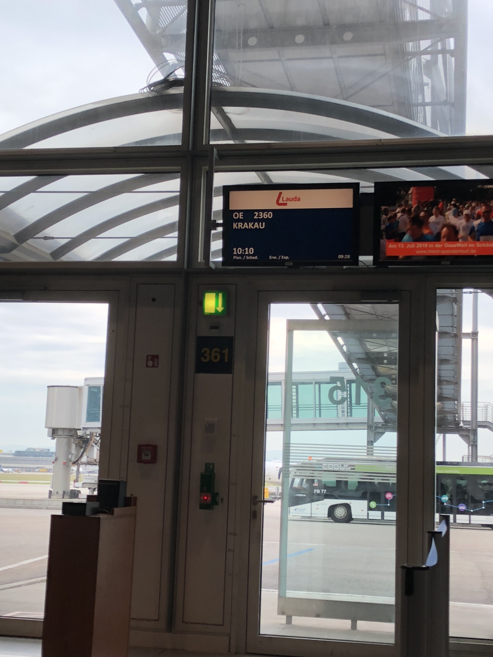 위의 비행기 탑승 사진을 보니 독일에서 오전 10시 30분이 조금 넘어 비행기가 이륙했는데 날씨앱을 보니 비가 쏟아진다고 했지만 공항에는 이미 비가 그쳐 있었다. 이때는 크라쿠프 시내와 공항은 조금 떨어져 있으니 시내에는 비가 오고 있나보다고 단순하게 생각하며 공항철도를 타러 갔다. 독일에서 확인한 일기예보에서는 토요일부터 크라쿠프를 떠나는 월요일 오전까지 계속 비가 온다고 해서 우산을 챙겨오고 선글라스는 집에 두고 왔는데, 이때는 비가 전혀 오지 않아 땡볕 아래서 고통받을 미래를 몰랐다…