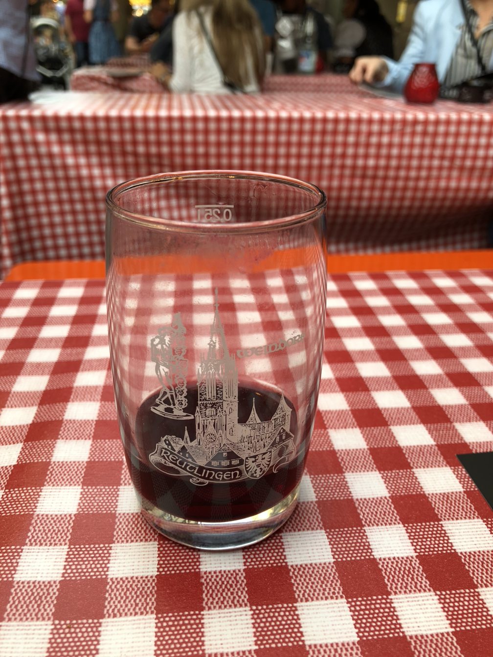 로이틀링엔 와인 축제의 전용 잔인데 책장에 올려뒀다 실수로 떨어뜨렸는데도 깨지지 않을 정도로 튼튼해서 단지 이 잔을 하나 더 갖기 위해 와인을 더 마시러 갈까 생각하기까지 했다. 그러나 와인 축제에 다시 가지 못해 결국 집에 이 잔은 하나뿐이다.