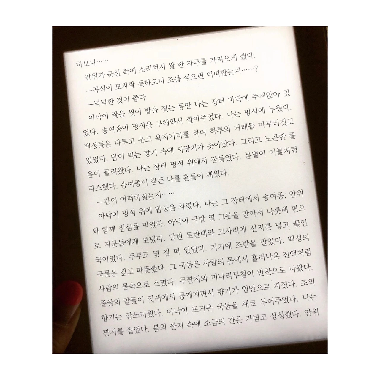 그 국물은 사람의 몸에서 흘러나온 진액처럼 사람의 몸속으로 스몄다.