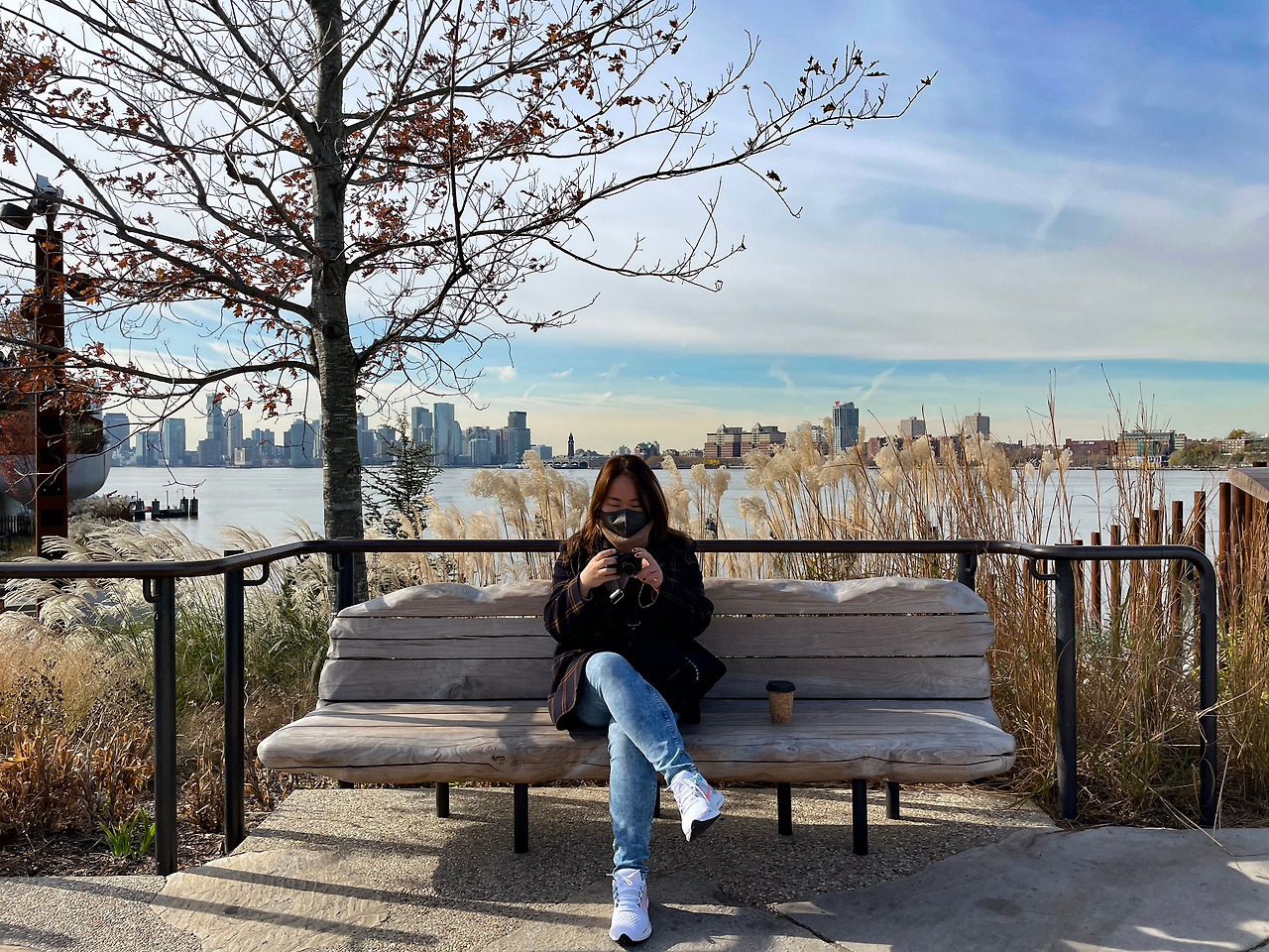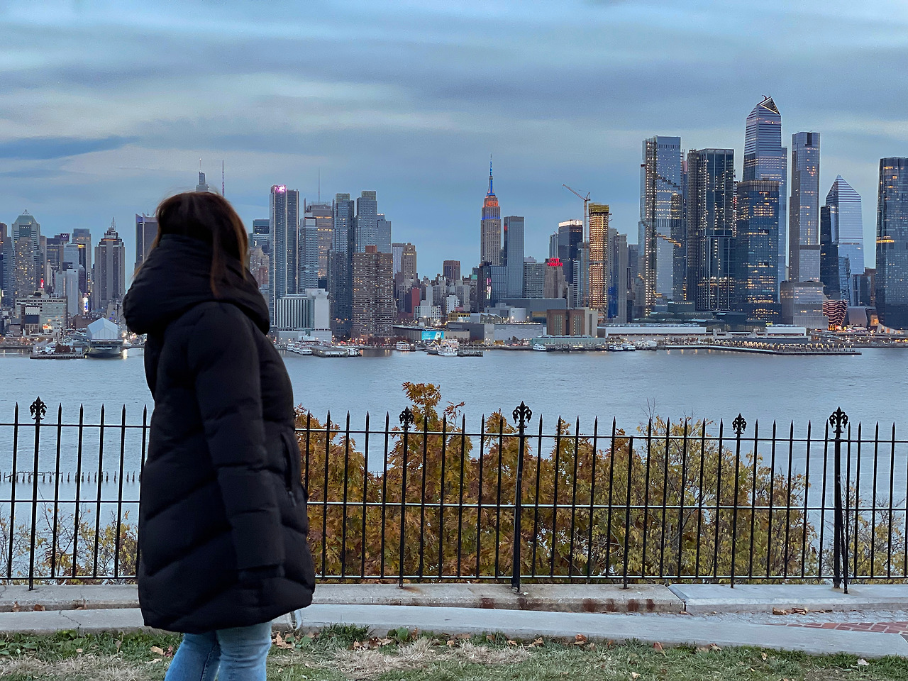 뉴욕 야경을 볼 수 있는 곳은 정말 많은데, 내가 제시한 여러 옵션 중 H양은 뉴저지에서 바라보는 뉴욕 스카이라인을 선택했다. 우버를 타고 서둘러 뉴저지 위호켄의 해밀턴 파크에 도착하니 다행히 선셋 타임 직전. 뉴저지쪽 뷰는 정말 시원하게 뻥 뚤려있어서 맨해튼을 전체적으로 조망하기에 좋았다. 단지 급작스레 추워진 밤 공기와 강바람이 패딩을 뚫고 들어왔을 뿐.