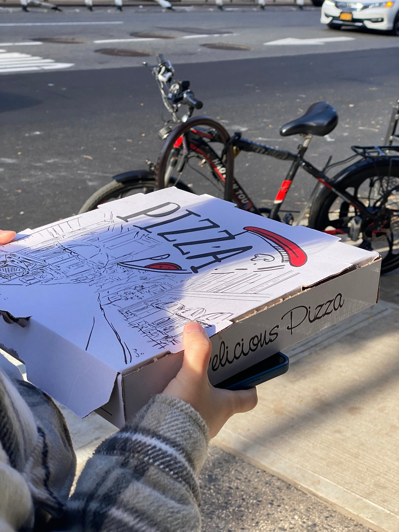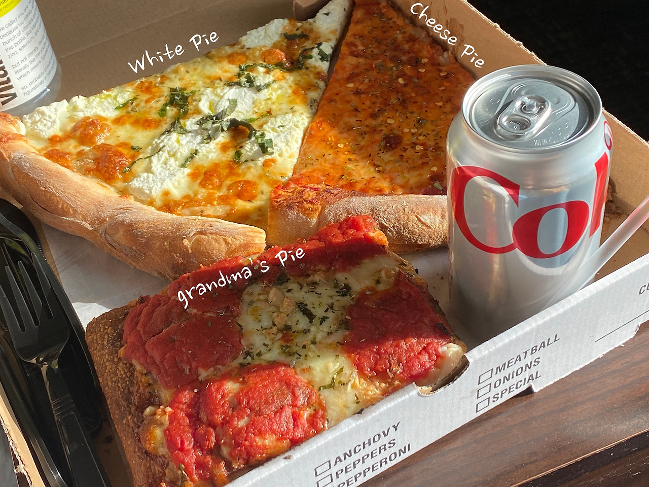 결국 호텔 근처에 구글맵 평점 4.9점 피자집에서 테이크 아웃을 하기로 했다. 막상 가게에 도착해보니 동네 주민으로 보이는 분들이 계속 오는게 찐맛집의 향기가 폴폴. 진리의 치즈 피자, 미지의 화이트 피자, 그리고 미국 할머니가 직접 만든 듯한 비주얼의 Grandma’s Pie를 주문했다.