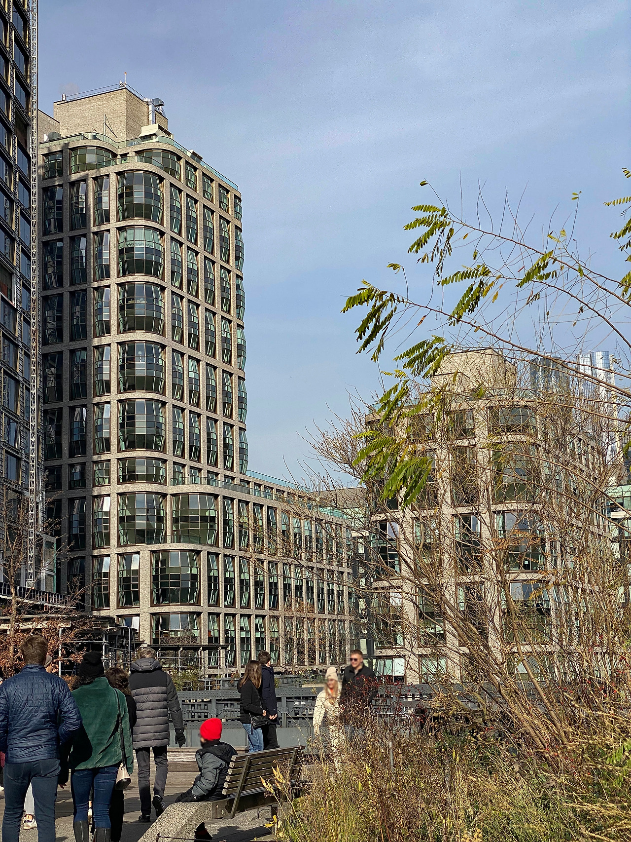첼시를 지나자 각자의 개성이 어마무시한 빌딩들이 속속 모습을 드러낸다. 9m 높이의 고가 도로이다보니 빌딩숲을 슉슉 날아가니는 기분. 공원 곳곳에서 여유로운 시간을 보내는 뉴요커, 건물 사이로 보이는 여러 작품들에 눈이 즐거웠다. 실제로 하이라인 인근 건물 1층에는 볼만한 갤러리가 많고 입장도 무료인 곳이 많으니 미술에 관심이 많다면 들러봐도 좋을 듯.