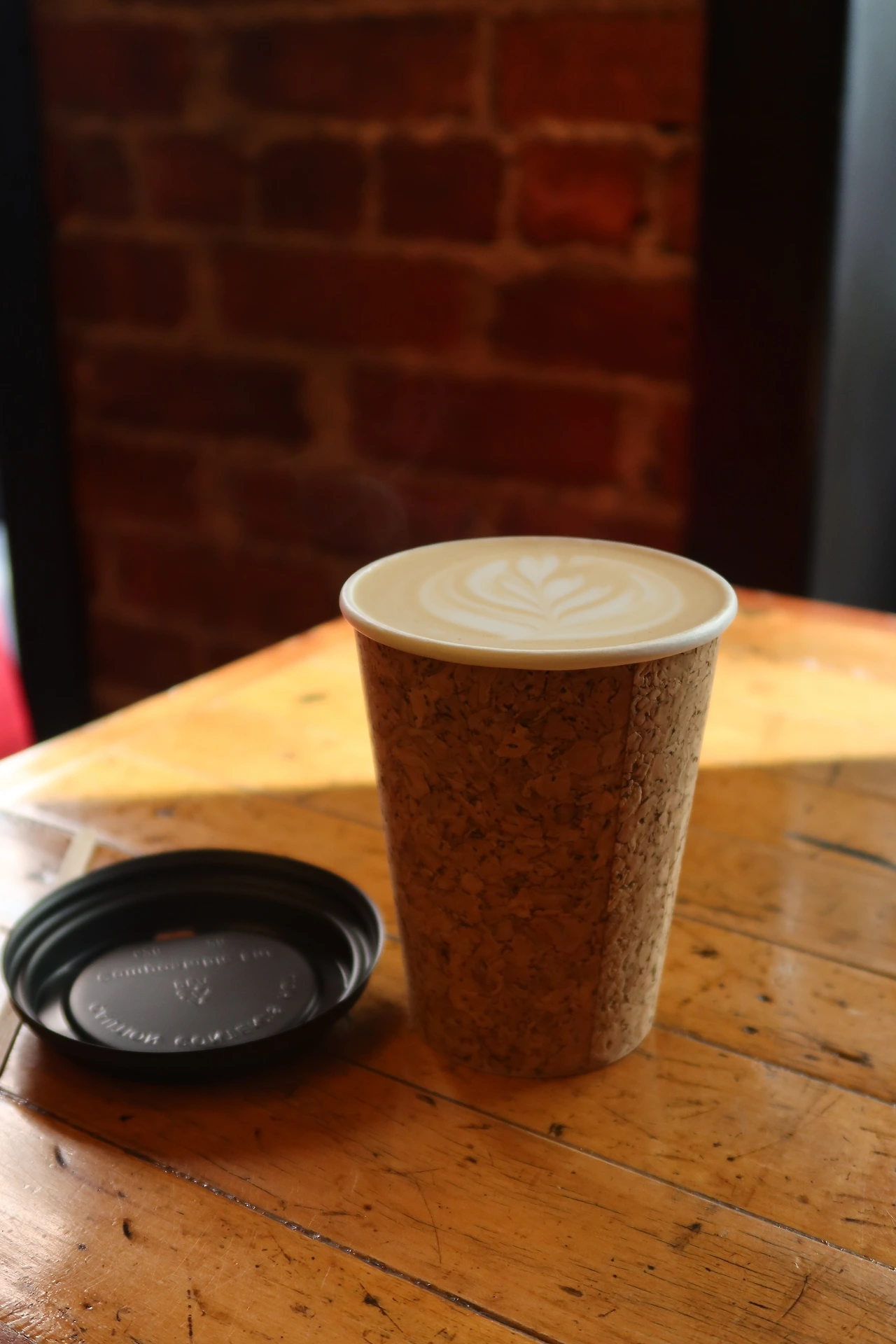 이제 모닝 카페인이 없으면 뇌가 깨어나지 않는 기분이다. (일종의 회사 생활의 폐혜랄까..) 아무튼 원두 1g까지 정성스레 계랑하는 바리스타에게 따뜻한 라벤더 라떼를 주문했다. 이 카페에서 처음 본 코르크로 코팅된 컵은 뜨거운 커피를 컵 홀더없이 들 수 있어 좋았고 첼시의 붉은 벽돌과도 참 잘 어울렸다.