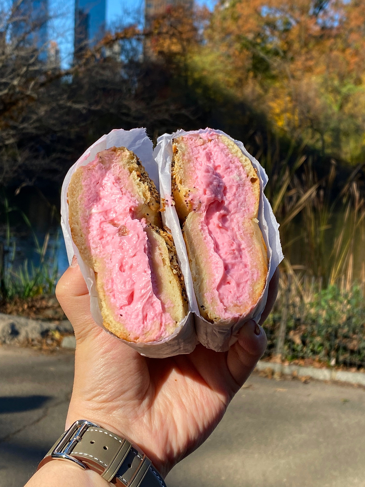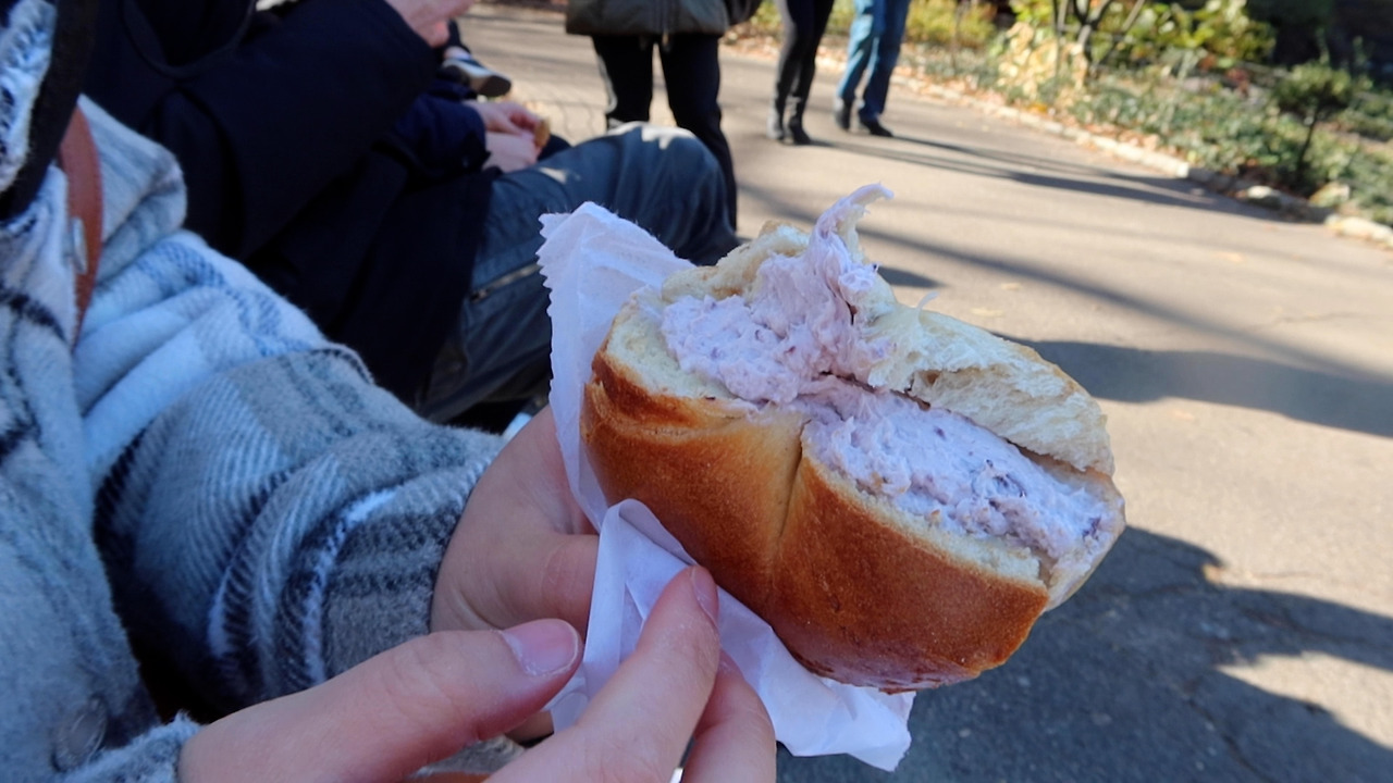 실랑이 끝에 픽업한 베이글을 들고 공원 입구에서 커피 한 잔을 사서 햇살이 잘 드는 벤치에 앉았다. 에싸 베이글은 워낙 맛있었던 기억이 있기에 너무너무 기대하는 마음으로 포장지를 벗겼는데 또 웬걸. H양 것과 내 것의 베이글과 크림치즈 옵션을 크로스로 받았다...^^ 제대로 주문을 받은 게 하나도 없어서 헛웃음이 나왔다. 그래도 고소하고 쫀득한 베이글과 크림치즈 조합이 참 맛있었으니 관광객인 내가 이해하기로.