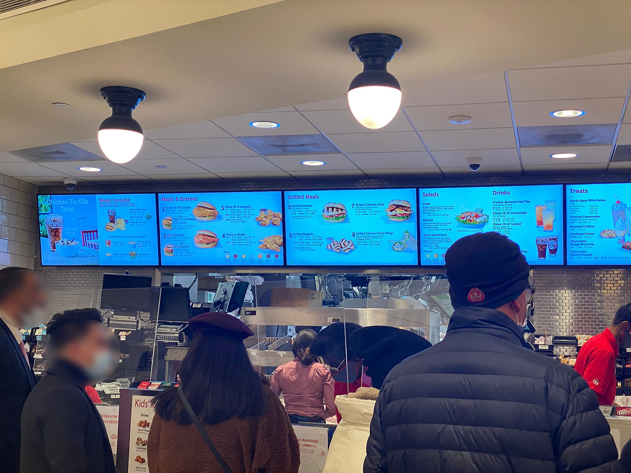 친구가 요즘 미국에서 가장 인기 있는 패스트푸드라고 알려준 것이 바로 칙필레 Chick-fil-A. 약간 우리나라의 맘스터치처럼 치킨버거가 유명한 곳이라고 한다. 타 지역에서는 보통 외곽에 위치한 쇼핑몰 푸드코트에 조그맣게 있어서 차를 타고 나가야만 먹을 수 있는데, 뉴욕은 시내에 매장이 많은 것 같으니 여기서 꼭 먹고 오라고 해서 오늘 저녁으로 당첨!