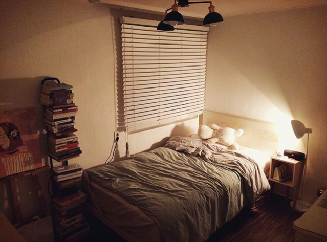언니가 예전 집에서 쓰다 더 이상 창문 크기가 맞지 않아 처치 곤란이었던 블라인드를 내 방에 달았고, 작은 방이었기에 조명도 3등 조명으로, 전구는 은은한 카페 조명에 사용되는 LED 볼 전구를 사용했다. 워낙 물건을 많이 가지고 있는 타입이 아니고 안 쓰는 것은 금방금방 버려버리는 탓에 보관할 짐도 별로 없었으므로 작은 방에 들어가기에는 한층 수월했다.