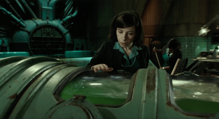 이 영화에서 물은 각각의 존재가 서로 침투하고 결합되어 더 큰 세계로 나아가는 과정을 거친다. 그녀가 홀로 행복한 시간을 가지는 곳이 물이 가득 담긴 욕조라는 것도 눈여겨 볼 수 있다. 그녀는 물 안에서 너무나 편안하고 행복해보이며, 자기 자신에게 행복을 선물할 힘 또한 가지고 있다. 처음에 방에서, 욕조에서 그녀를 담고있던 물은 엘라이자가 인어를 만날 때 욕조 안의 그녀의 물과 탱크 안의 인어의 물, 이렇게 2개로 나누어진다. 각각의 독립적인 세계가 서로 마주하기 시작한 것이다.