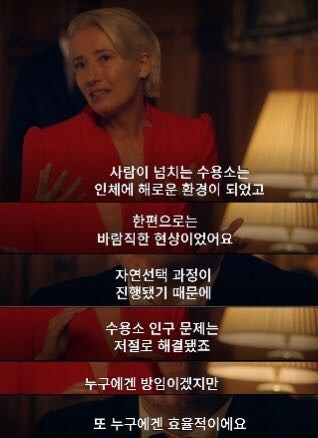 years&years의 총리는 자국의 이익만을 위해 난민들을 수용소로 몰아넣고 인플루엔자에 감염된 사람들을 수용소에 들여 ^자연선택^ 이라는 미명 하에 학살을 자행한다. 현실세계로 돌아와보자. 현재 영국과 스웨덴은 ^집단면역^ 을 통한 코로나 대응을 주장하며 노약자들의 죽음을 자연선택에 의한 바람직한 현상으로 생각하고 있다. 선진국이라고 생각했던 국가들의 충격적인 대처에 이제 유럽은 세계 패권을 가져가기에는 너무 후지지 않나라는 생각이 드는건 나뿐일까?
