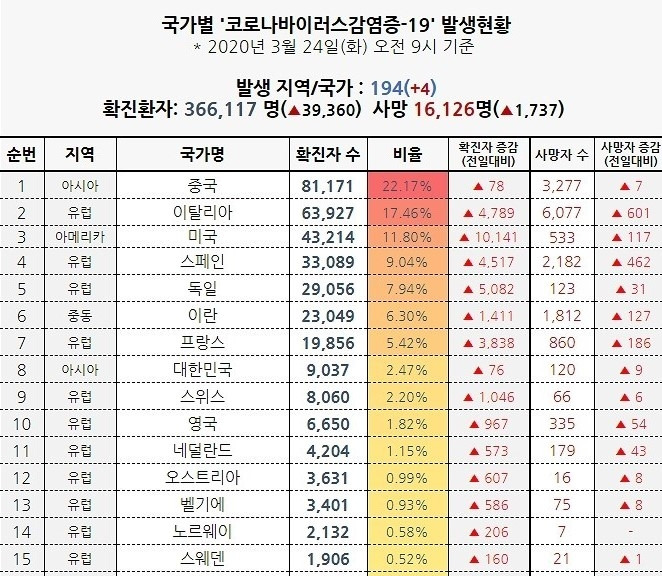 이 역사에 비추어 봤을때, 현재 코로나의 국가별 확진자수는 단순히 전염 추이 외에 어떤 다른 메시지를 주고 있는 것 같아 보인다. 우리가 세계 패권을 쥐고 있다고 굳게 믿었던, 선진국이라는 것에 한치의 의심도 하지 않았던 유럽권 국가들과 미국이 코로나 확진자수를 앞다투어 갱신하고 있는 것이다. 과거 아메리카 원주민들에게 병을 옮겼지만 그 자신은 전혀 피해입지 않았던 유럽인들이, 마치 자연의 보복이라도 당하는 것 마냥 속수무책으로 당하는 모습이 조금 우습기까지 하다.
