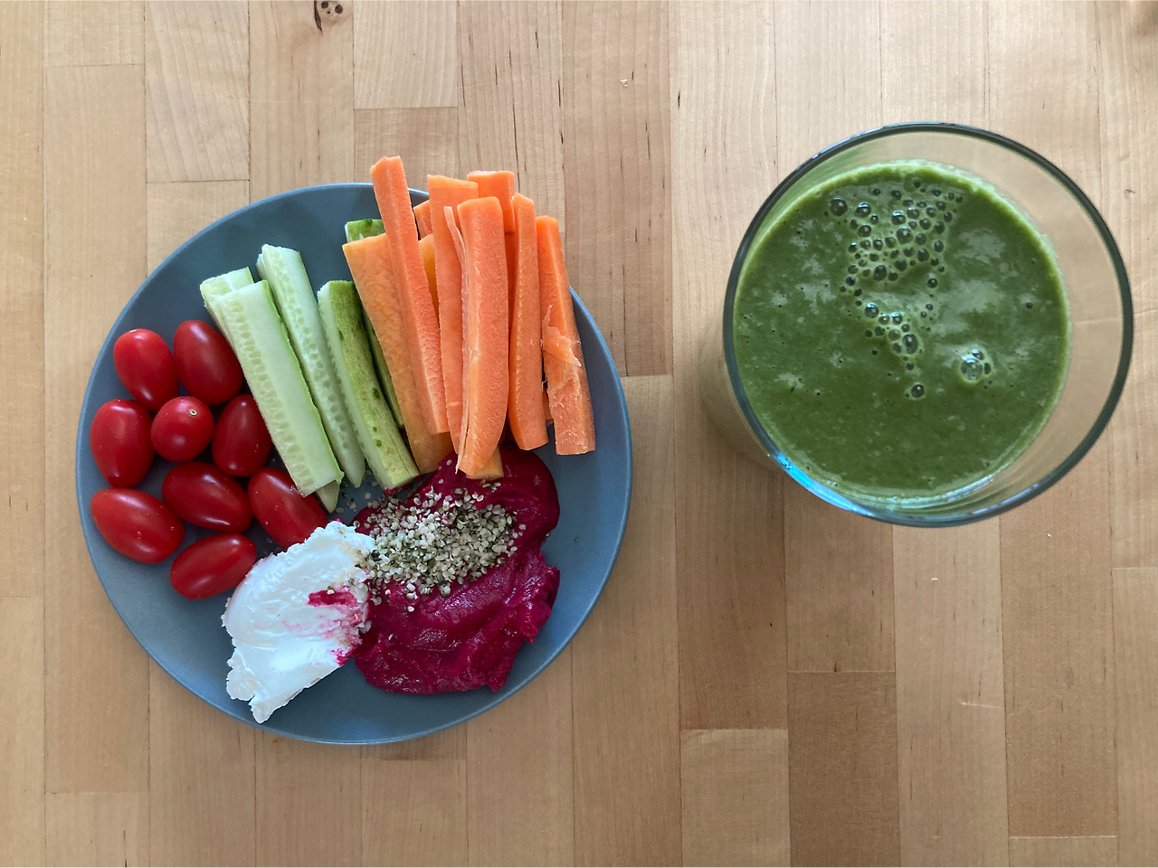 방토, 오이, 당근, 그릭요거트, 비트후무스, 햄프씨드
