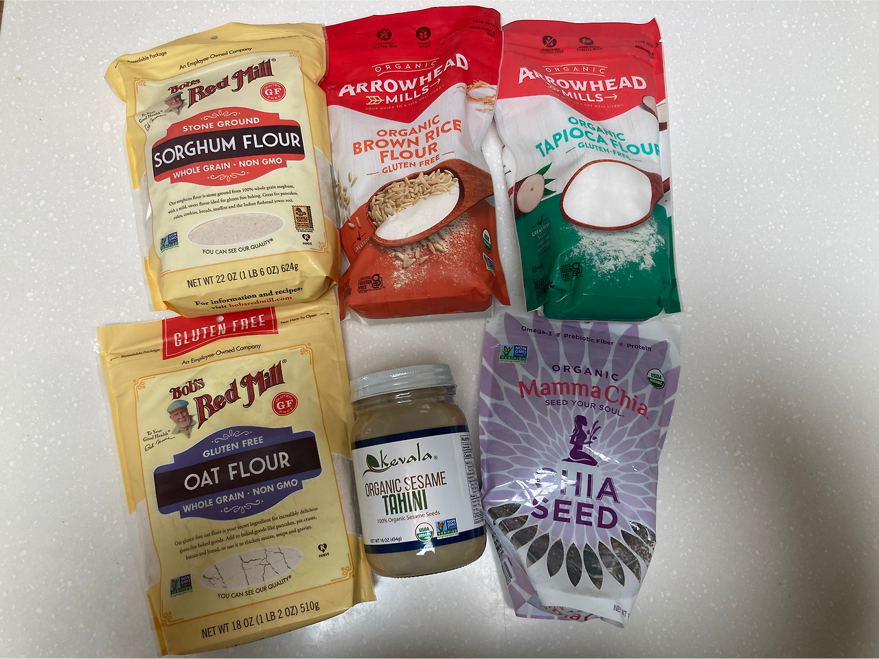 병에 든 것은 참깨페이스트(타히니) 인데, 후무스를 만들때 넣어서 거의 다 써서 추가로 구매했다. 오른쪽 맨 아래 있는 것은 치아씨드. 스무디에 넣거나 푸딩을 만들때 쓰기도 하고 태오 요거트나 바나나 매쉬해서 간식으로 줄때 섞어주려고 구매했다.
