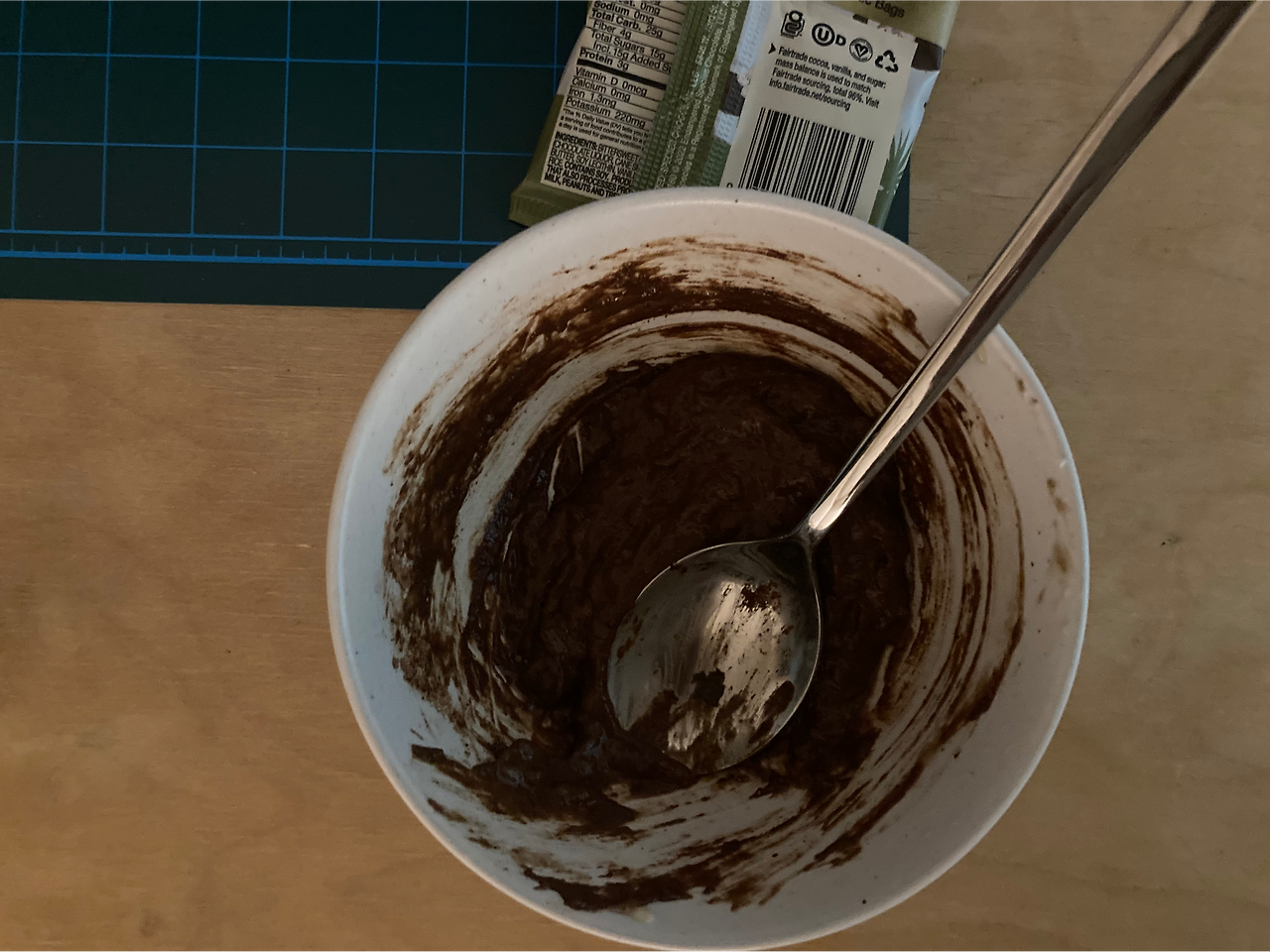 커리를 먹기 전에 채소스틱과 비트 후무스를 추가로 먹고, 저녁 간식으로 초콜릿무스 같은것이 먹고 싶었는데 당장 사러갈수도 없고 해서 바나나 으깬것, 생카카오가루, 해바라기씨버터를 섞어서 먹었다. 제법 초코무스 맛이 나서 맛있게 먹었다. 추가로 다크초콜릿도 먹었다.