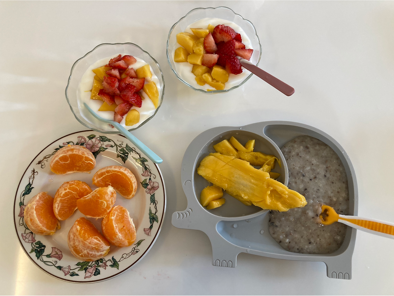 내 아침 : 요거트, 딸기, 망고, 천혜향