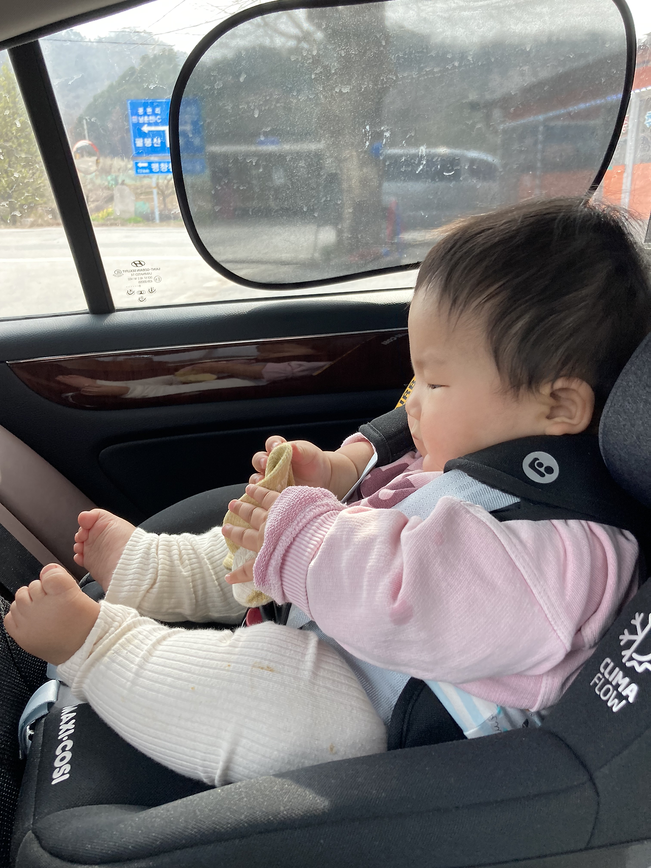 자기주도 이유식 (아기가 스스로 먹는 것을 연습시키는 방법)을 하는 아기들에게 망고 씨를 주면 잡고 자기가 빨아먹는 것을 보고 태오에게도 줘봤다. 근데 아침에 수유한지 얼마 안된 상태에서 이유식을 주기도 했고 집에서 앉던 하이체어가 아닌 내 무릎에 앉아서 먹느라 제대로 아침을 먹지 못했다. 그래도 죽을 어느정도 먹고 우리는 아침 산책 겸 태오 낮잠을 재우기 위해 나갔다.