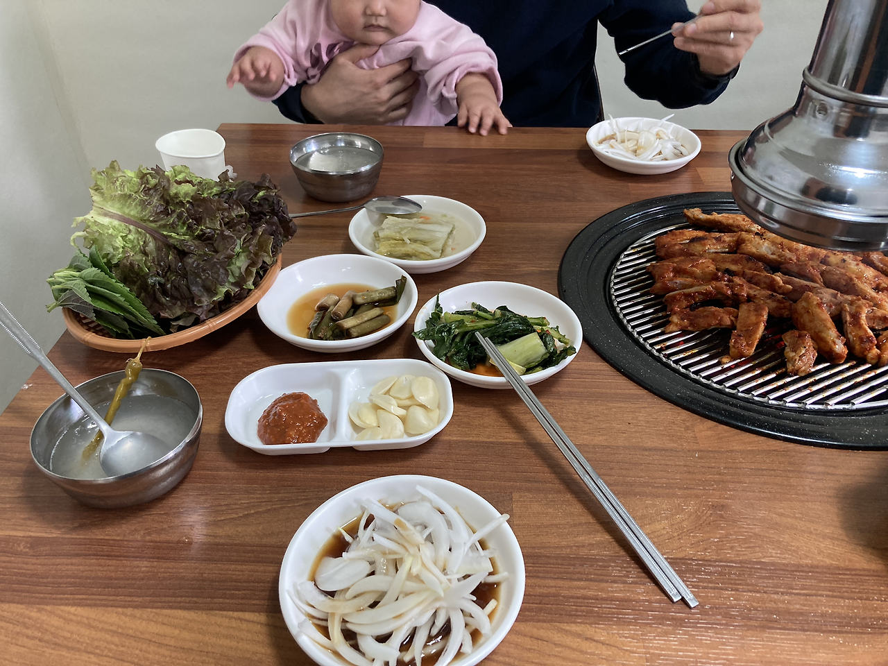 내 점심 : 닭갈비, 된장찌개, 쌈채소, 밥