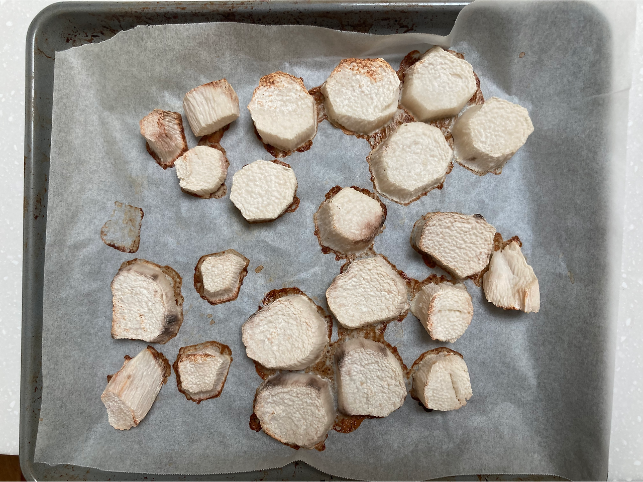 마껍질 알러지 소동을 겪고 구워진 마는 그저그랬다. 기대했던 단맛은 별로 느껴지지 않았다. 구워서 약간 쫀득해졌지만 가운데 부분은 마 특유의 끈적거리고 미끌거리는 식감이 그다지 좋지않았다. 아마 당분간은 다시 사지 않을 것 같다.