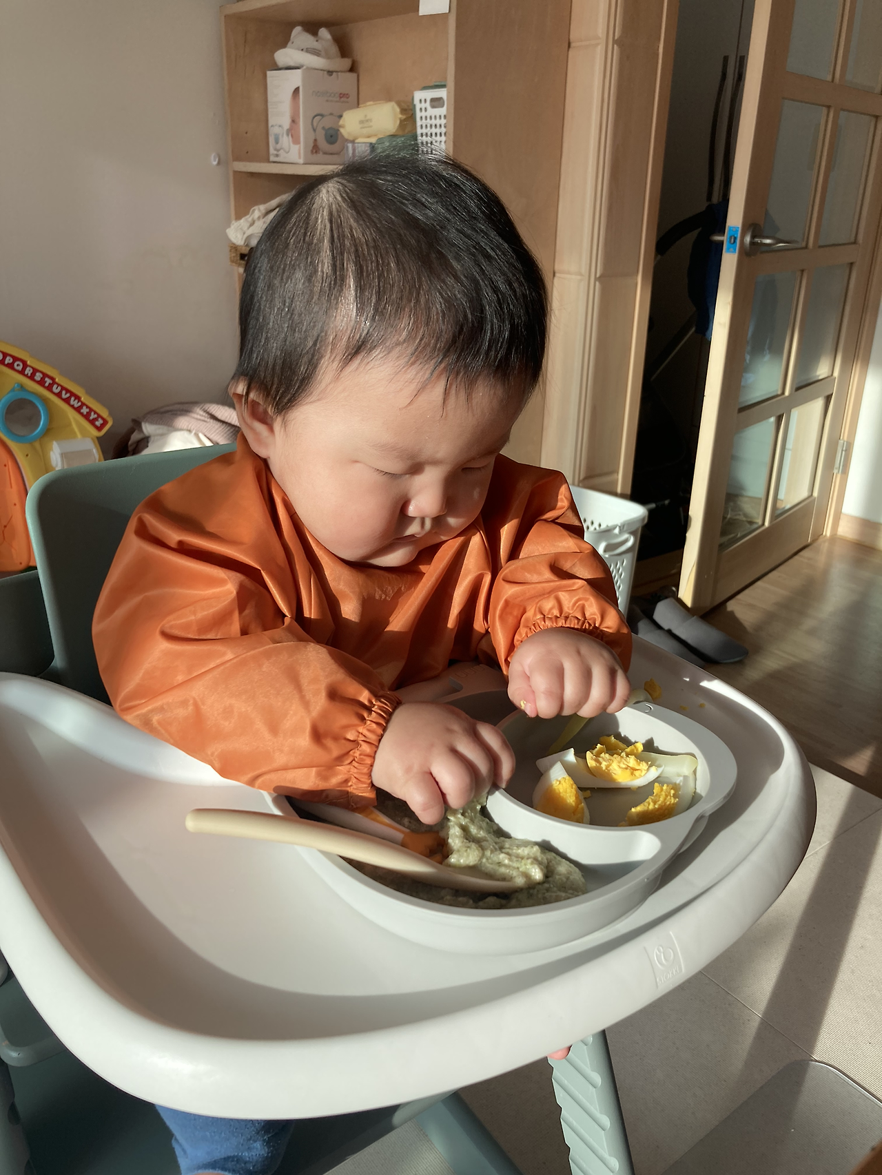 아무튼 달걀을 먹고 먹일 수 있으니 먹는 것에서 많이 자유로워졌다. 달걀은 쉽게 영양분을 채울 수 있는 재료이기도 하고 빵, 아이스크림, 반찬, 찌개 (특히 순두부찌개), 국(육개장, 떡국 등) 등등 다양하게 활용되는 재료라 제한하지 않고 먹을 수 있음에 감사하다. 아래 사진은 오늘 저녁에 삶은 달걀을 집으려는 태태오.