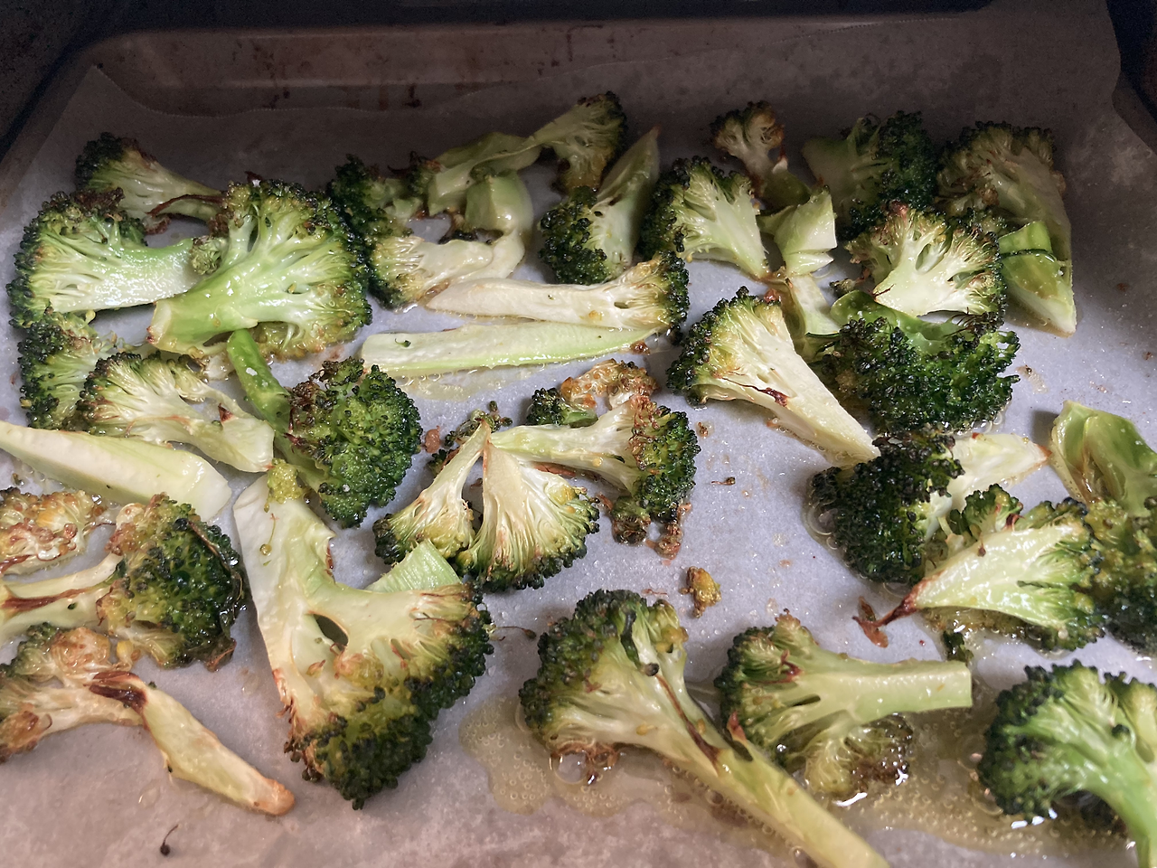 남은 브로콜리 모두는 잘라서 올리브오일, 소금간을 한뒤 오븐에서 구웠다. 남편이랑 내가 먹을용으로. 아래처럼 자른 브로콜리는 180도에서 13분 정도 구우면 먹기 좋은 정도로 익는다.