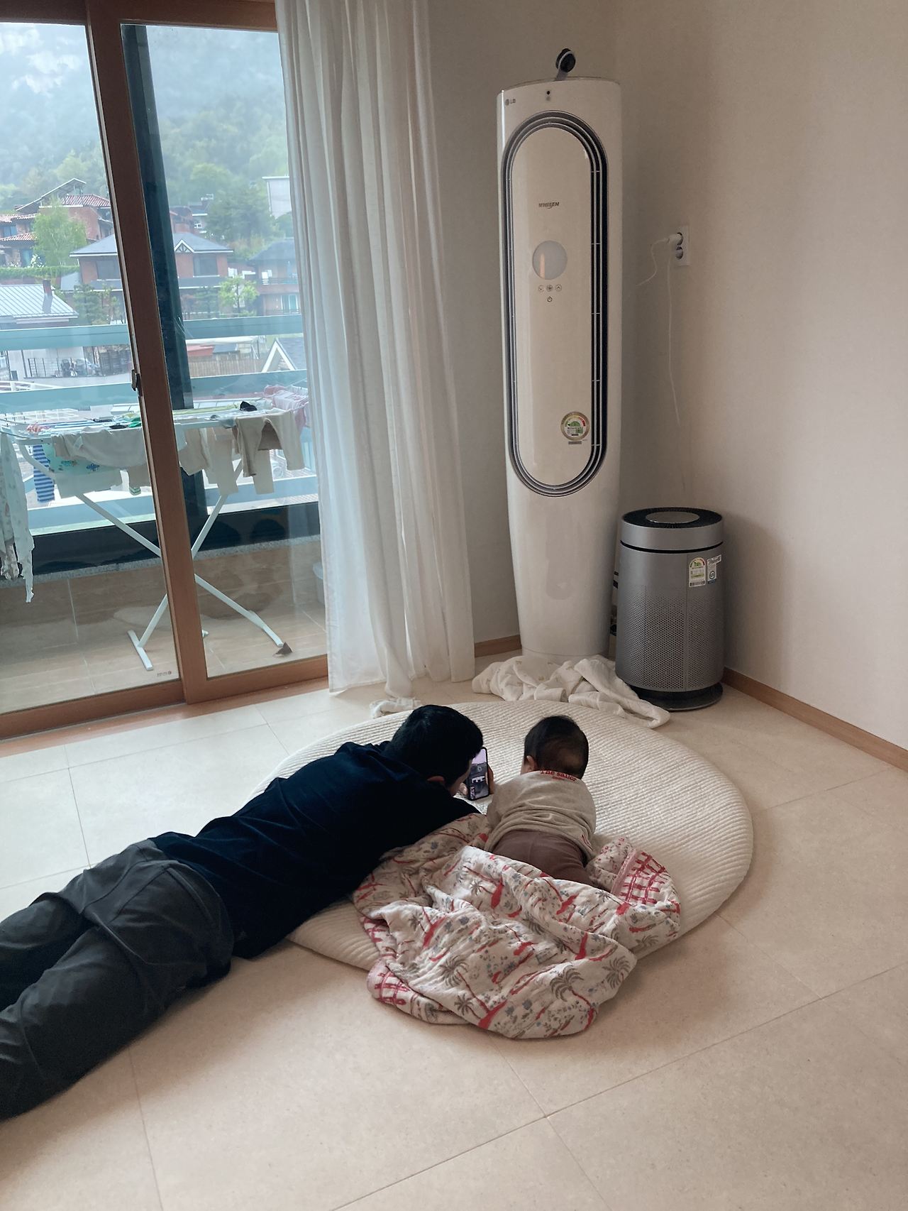 아래 사진은 남편이 태오랑 친정엄마한테 비디오콜을 하고 있는 모습ㅎㅎ